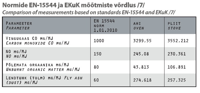 Niipalju ma Eerika ahju kohta olen lugenud, mis on kirjas "Teuk XV Taastuvate energiaallikate uurimine ja kasutamine" viieteistkümnenda konverentsi kogumikus. Seal on kirjas järgnev: "Tuginedes gaasianalüüsile võib väita, et põlemiskeemia oli korras". Täpsemaid väärtusi sealt ei leia, kas need euronormi piiridesse mahuvad või mitte.