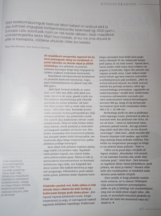 Mida seal siis tehti? Mõõdeti, teadustöö, põlemiskeemia oli korras. Olen muidugi rohkem kursis kui avalikkusele on avaldatud.CarlN kirjutas: 04 Jaan 2019, 13:22 Kas Eerika ahju peenosakeste ja vingugaasi konsentratsioon on mõõdetud?