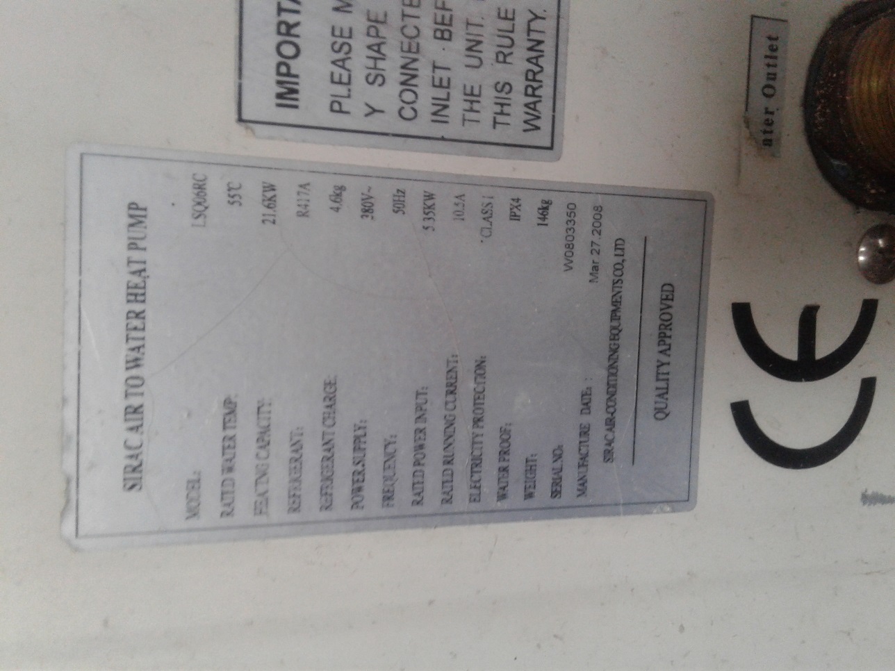 Pakkuda üks monoplokk tüüpi õhk-vesi soojuspump. Tehnilised andmed piltidel. Pump ei tööta ja gaasi pole eriti ka sees. Pumba ostsin kunagi mittetöötavana ja oli plaan korda teha aga nüüdseks pole enam huvi ja vajadust. Eelmise omaniku jutu järgi lekkis gaas välja ja tõenäoliselt leke soojusvahetis.(kylmaaine-vesi).