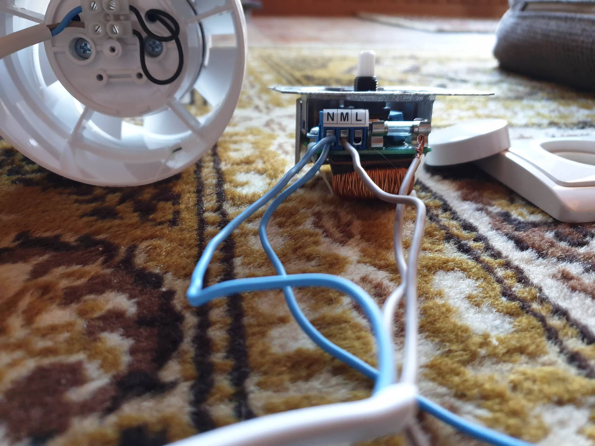 Ühendasin vendi 2 juhtmega lülitiga, mis käib seina pistikusse. Lüliti, mis oli 1 juhtme peal eemaldasin ning asendasin dimmeriga. Dimmeril on aga 3 ühendust: