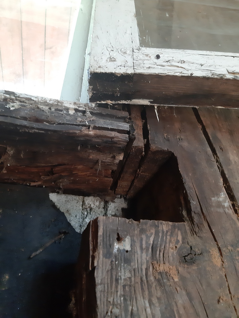 Renoveerin vana krohvitud palkmaja (ehitatud 1960ndatel), mis on suhteliselt heas korras. Hakkasime tegema sahvrisse pesemisruumi vastavalt muinsuskaitse ameti juhistele (Niiskete ruumide ehitamine vanasse majja). Ettevalmistustööde käigus selgus, et akna alune palksein ja alumine palk on täiesti läbi, pudises maha. Puitpõrand tuli ka eemaldada, alt tuli välja korralik betoonist aluspõrand.