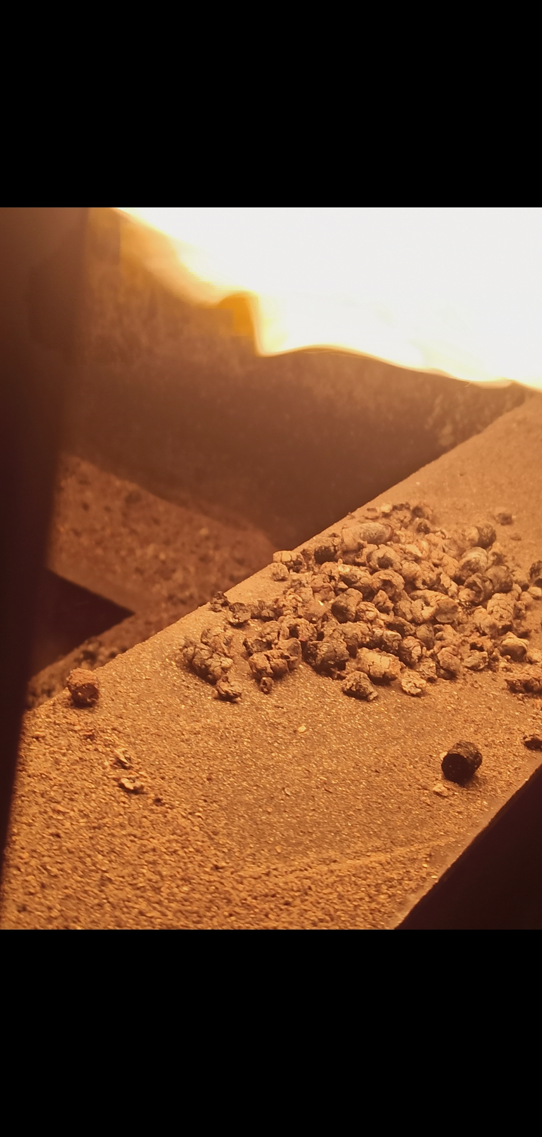 Katlas on mustad ja kõvad pooleldi põlenud pelletid.