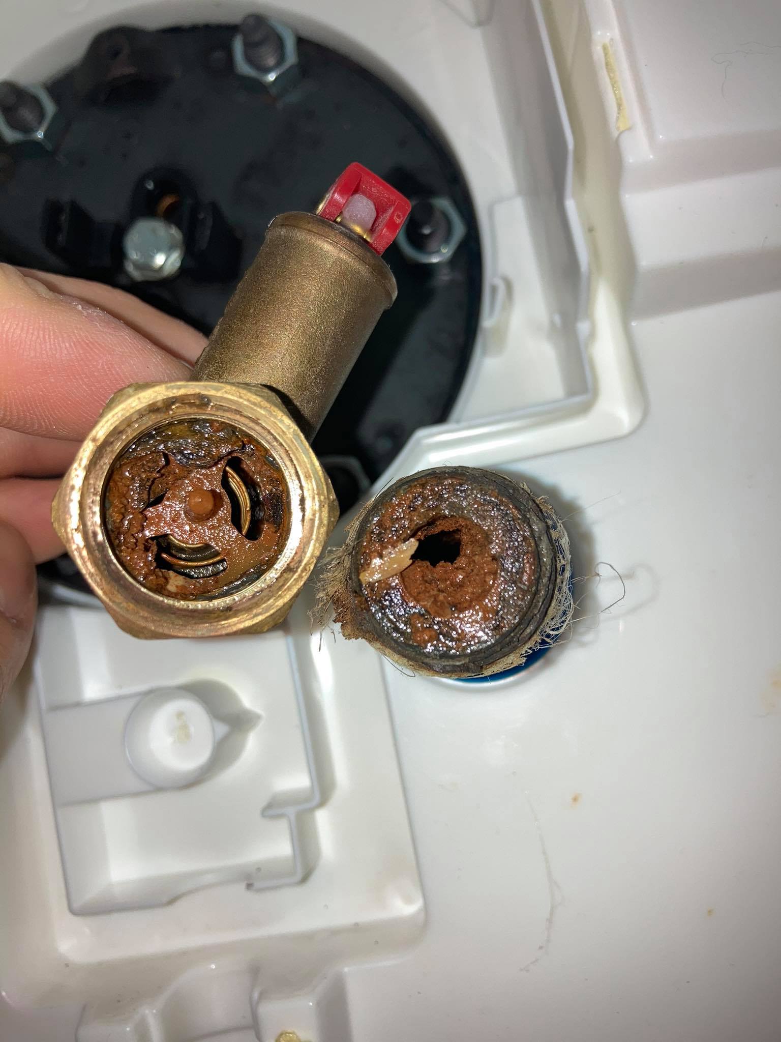 Nimelt hiljuti hakkas lekkima võrdlemisi uus boiler - 2 aastat noor kõigest. Eeldasin, et kuskil roostetas sisemus läbi. Suhtlesin maaletoojaga ja selgus kohe, et põhjuseks galvaaniline korrosioon kuna näha, et valed metallid omavahel ühenduses ja dielektriline vahemuhv täiesti valesse kohta ühendatud. Pildil see must muhv mis survevooliku ja rõhuklapi vahele pandud, see pilt on siis sellest boilerist mis läbi roostetas.. Boileri juhendis käses sooja otsa peale panna dielektriku, ideaalis võiks dielektrik olla esimene jupp mõlemas otsas, nii sooja kui külma otsas.