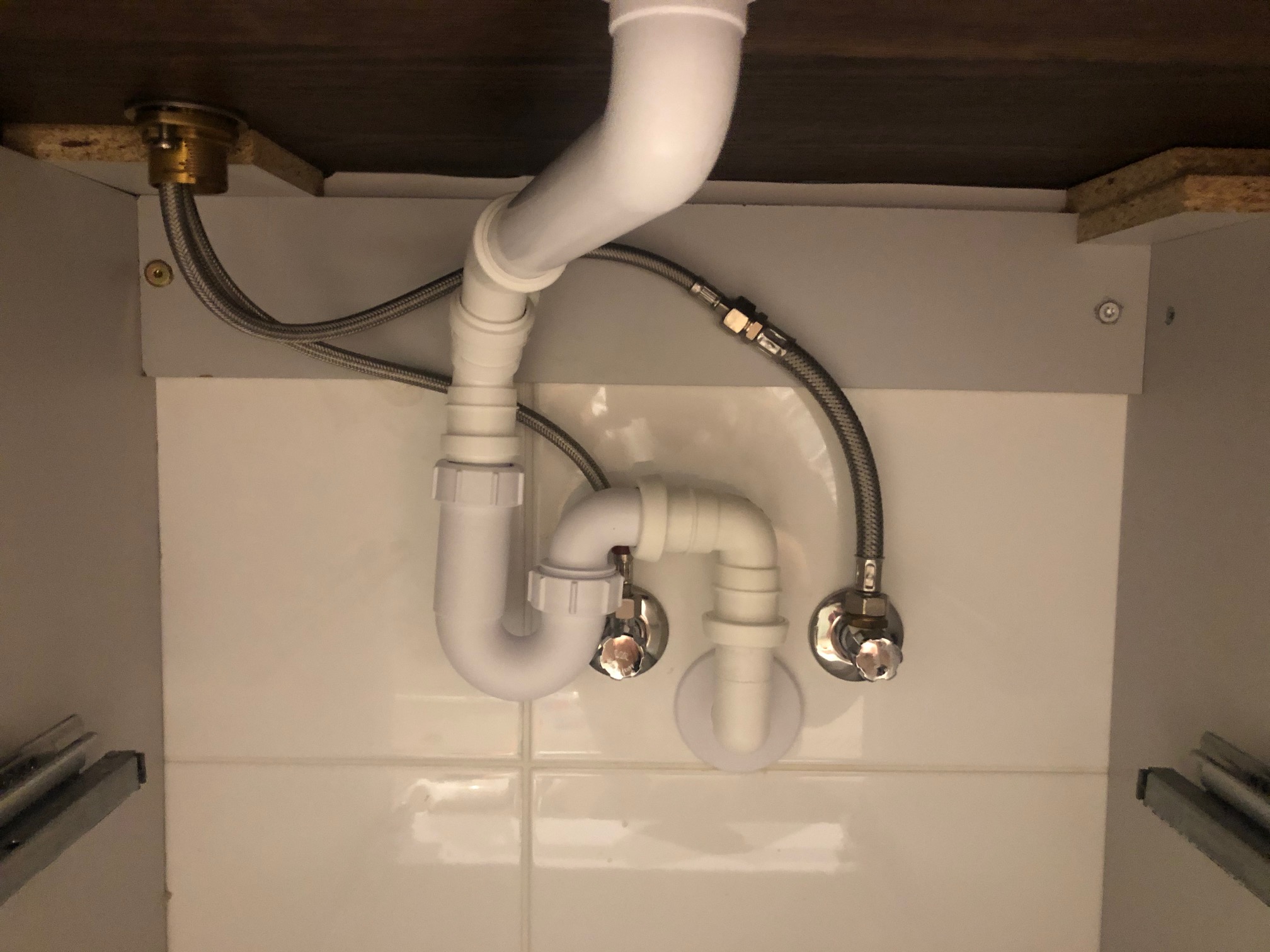 Võimalik et minu asja tegi juba algusest peale raskeks tõsiselt ebamugav olustik, kust torusid ühendada. Esiteks on jäetud seina juurde minimaalselt vähe ruumi. Teiseks on tegemist kahe ülimalt kõrge sahtliga. Siis on seal vahel seinas üsna kaugele jäetud veel veetorud - seal nagu reaalselt polegi erilisi variante mida mõelda või teha. Uskuge mind ma proovisin ikka igasuguseid variante juba esimesest sifoonist alates. Ruumipuudus pani ka "oma" asjad paika.