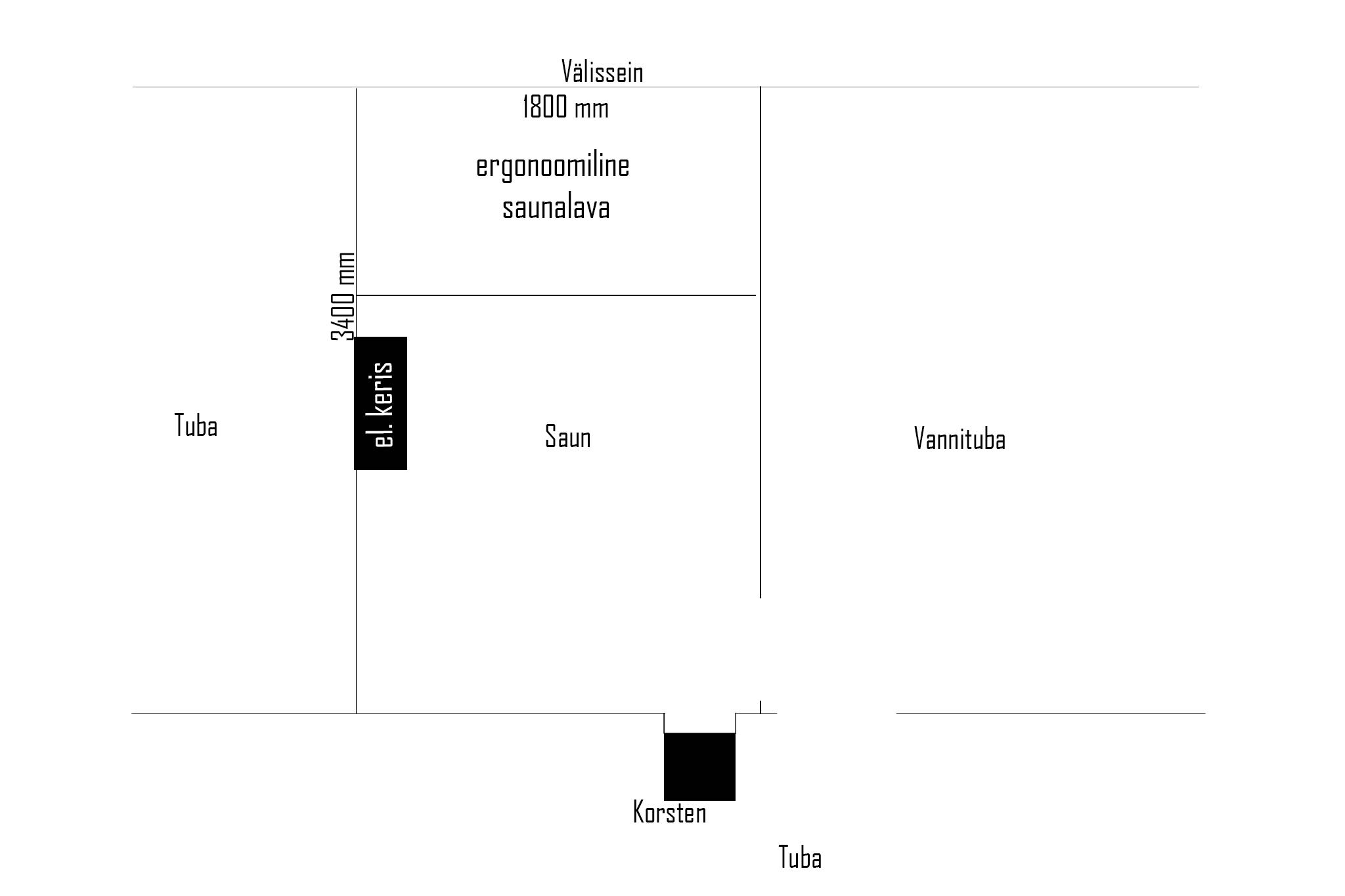 Ruumis kuhu leiliruum tuleks on 3 kipsseina ja kipslagi ning üks sein on vanast palgist mille teiselpool on tuba.