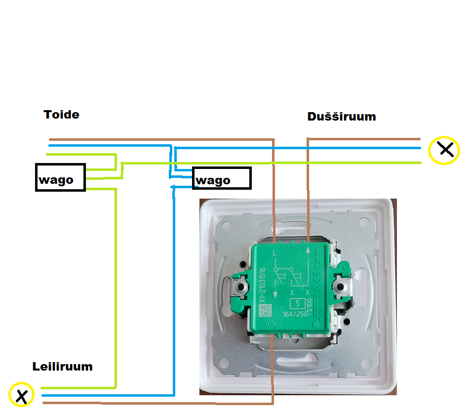 Lülitit läbib vaid faasijuhe L. Neutraaljuhe (sinine) ja maandusjuhe (kolla-roheline)ikebana kirjutas: 29 Jaan 2022, 20:52 Rikkevoolukaitse tuleb süsteemi. Muid erilisi seadmeid pole. Kas siis N sinist lülitisse ei tulegi?!? Teen välise ühenduse Wagodega ja kõik?