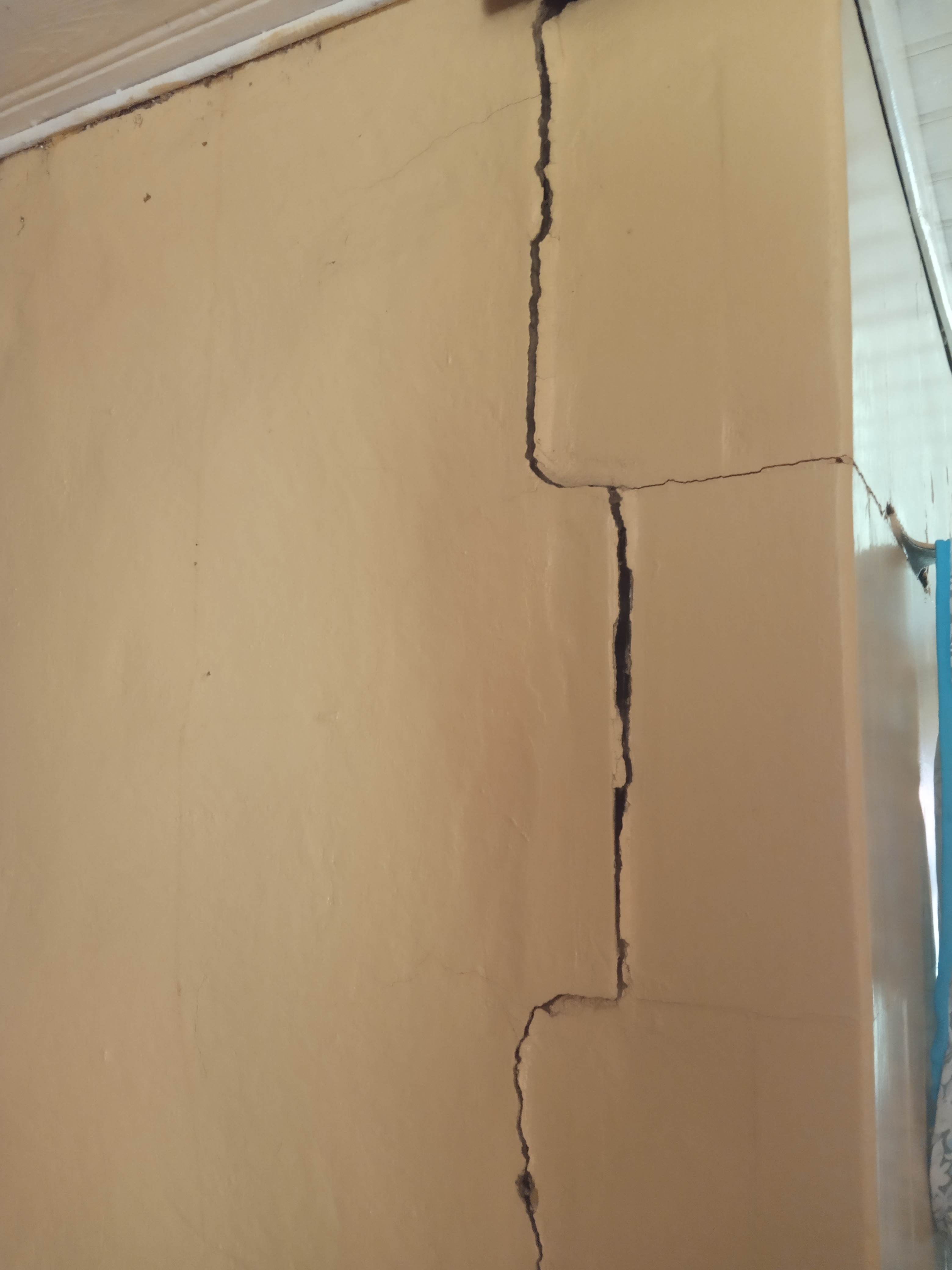 Selliseid suuri pragusi varemgi lapitud.Kraabi värv maha,pragu seest puhtaks,niisuta pragu seest ja vedela saviseguga ära täita.Toimib reaalselt.