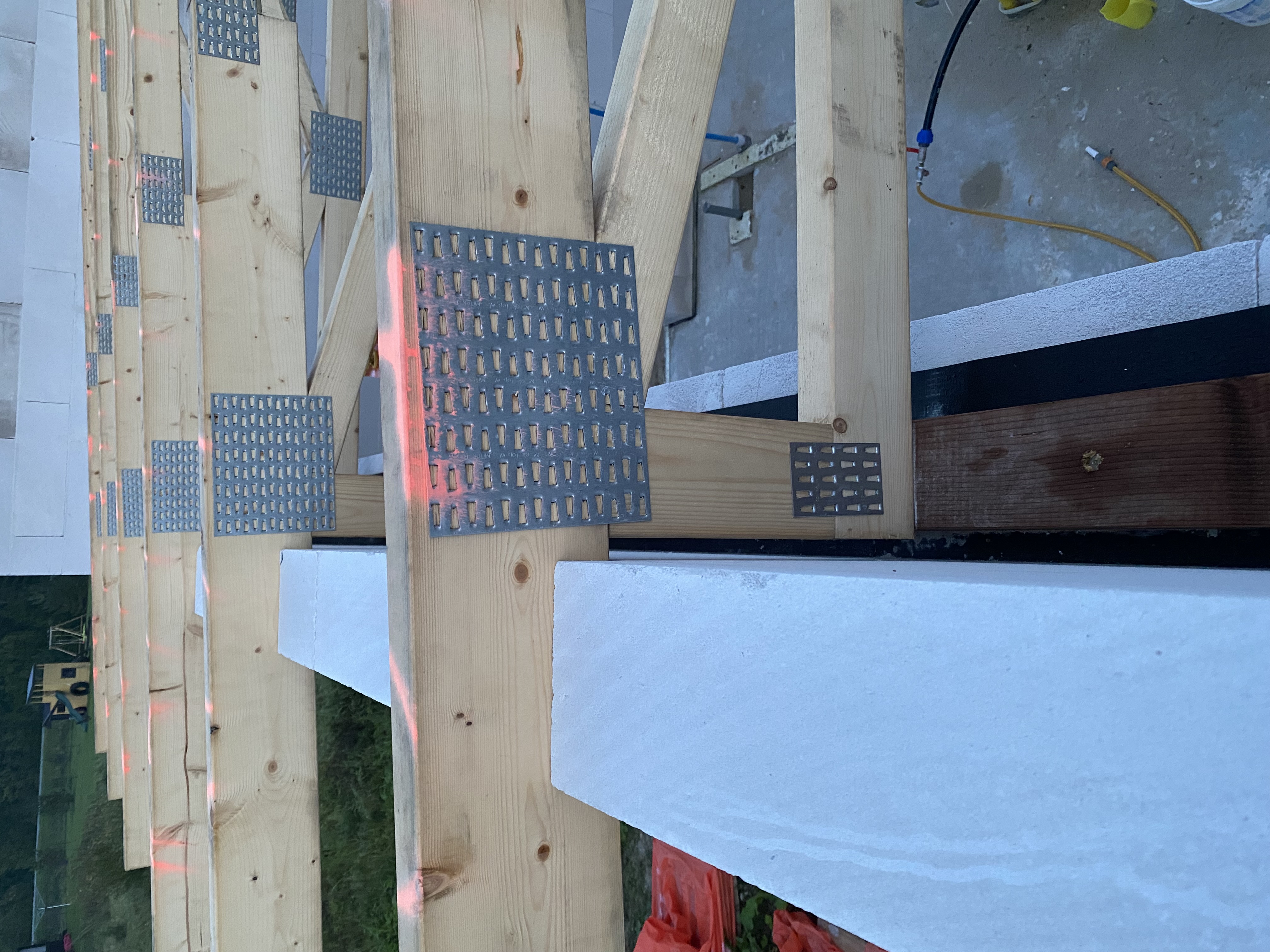 Sai küsitud Ehitusmessil Bauroci tootespetsialistilt vöö vajalikkuse kohta, kes väitis, et seda ei ole vaja antud hoone puhul. Fermid toetuvad 45x95 müürilatile ja kinnitatud tagantpoolt, kus katus on parapeti vahel, 8,5x200 poorbetoonikruvidega 400 sammuga ja eest 200 sammuga. Tugevdatud nurgad kinnitatud 6x45 kruvidega, 6 müürilati ja 6 fermi sees.