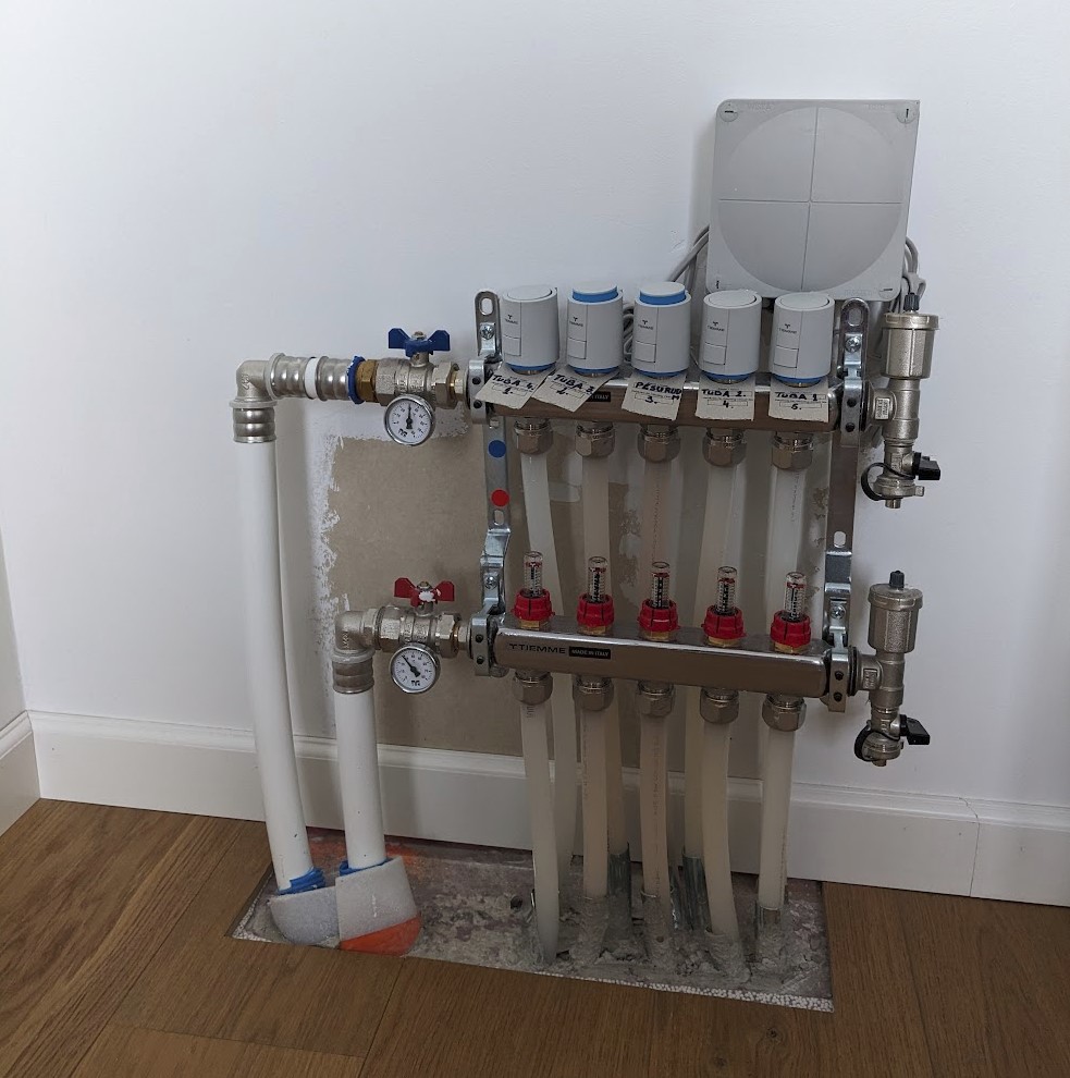 Ise plaanisin ka alguses magnetit, aga lõpuks panin esiseina peenikeste "peitekruvidega" kinni, põrandakütte häälestamisel on sinna rohkem asja, nüüd pole mitu aastat pidanud avama.