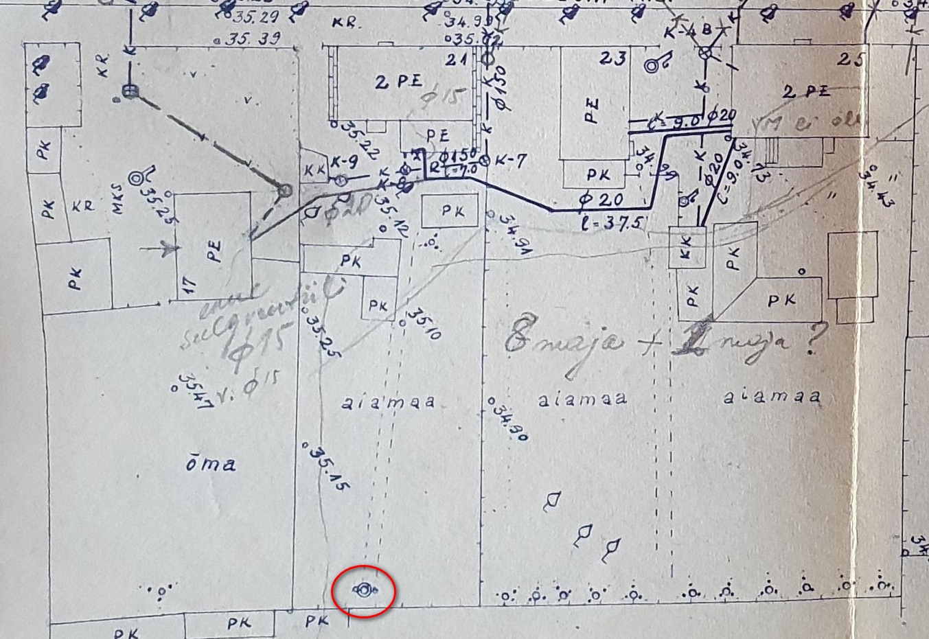 Antud joonis tundub olevat veetorustiku rajamise eskiis/projekt, mis võiks seletada, et pärast ühisveevärgi rajamist on vana kaev maha jäetud, täis aetud vms.