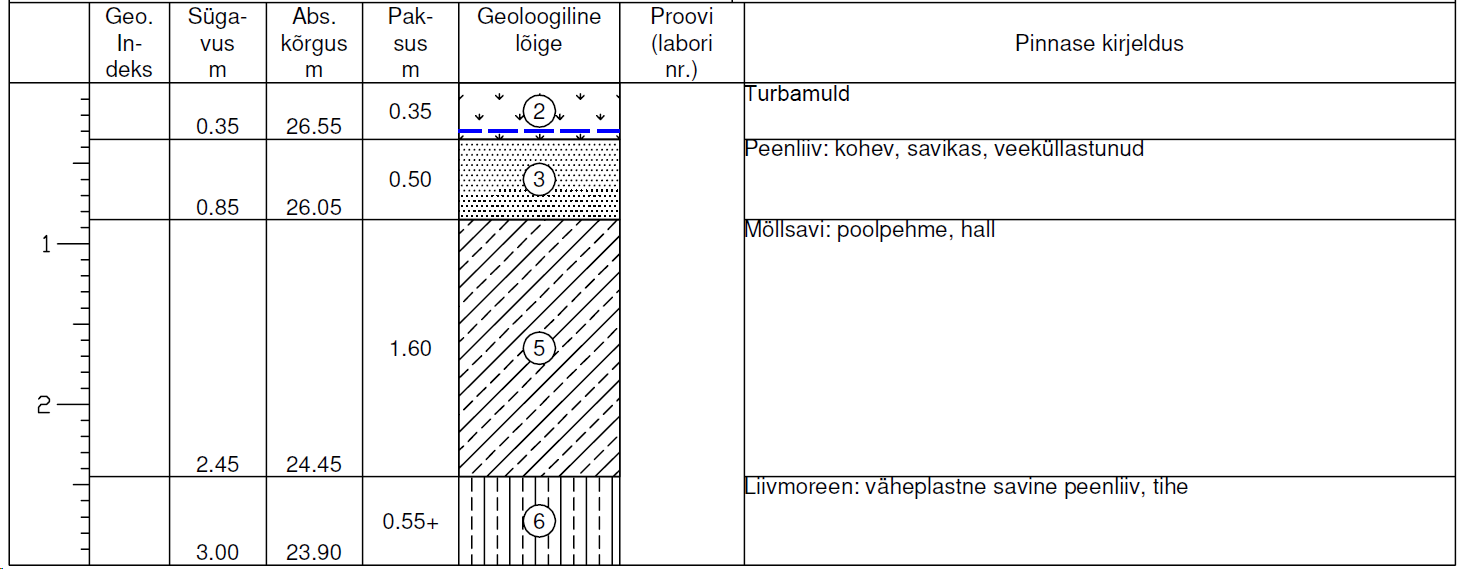 Krundi kahel küljel on ~0.5m sügavune kraav ja geoloogilise uuringu järgi on pinnaveetase ainult ~0.3m sügavusel (sinine joon puuraugu profiilil). Müüja küll arvas, et täiskeldriga lintvundament võiks olla teostatav, aga see ei tundu väga mõistlik...