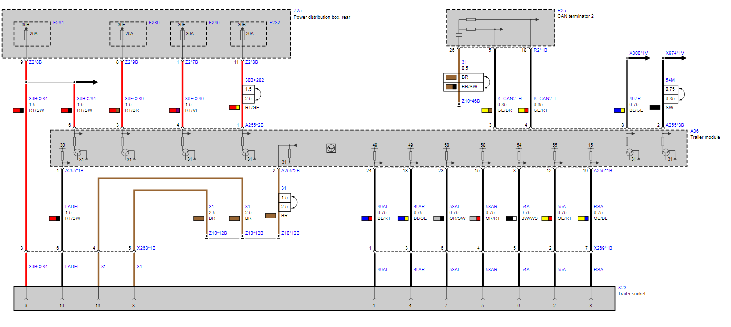 See, et käru tulede kontroll, käru järgiühenduse tuvastamine toimiksid nagu peab, ei tohi kärude puhul kasutada Hiina laiatarbe juhtmooduleid. Lisatud BMW skeemil on näha, et plokile ei võeta infot tulede juhtmetelt, vaid tuleb mööda andmesiini. Kui paigaldaja-tüüp tahab hakata ühendama tulede külge, tuleb öelda:NO- NO! Näiteks LED-tagatulede toitevool võib olla nii mahapiiratud, et käru hõõglampe ei saa selle kaudu toita.