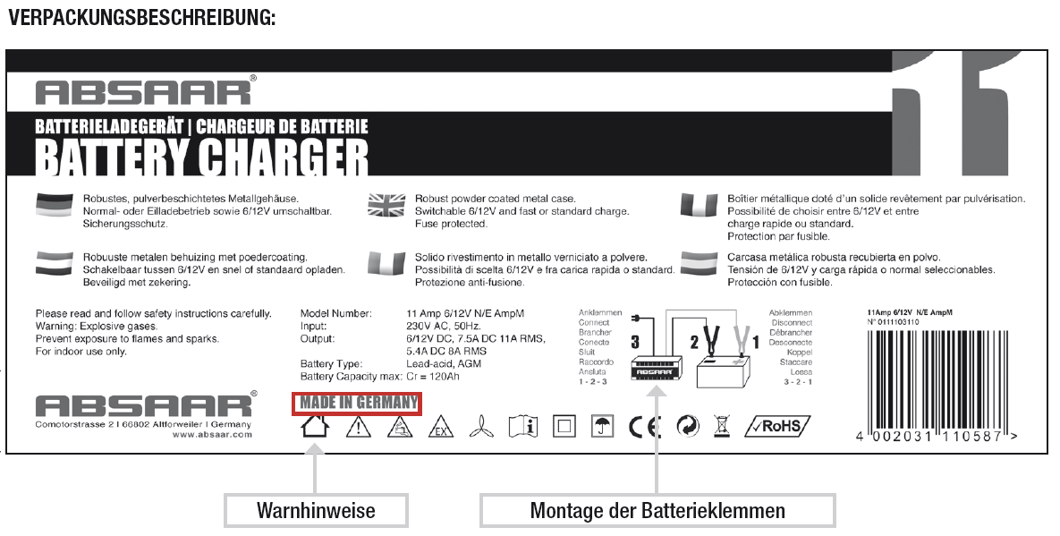 Tuntub olevat saksa juurtega firma, kes arvatavalt Hiinas saksa firmale alltöövõtu korras tootnud ja tänaseks on kasvanud Hiina firmaks, kes ise disainib-toodab-turustab, millel saksa juurtega puutumust vaid algupäraste toodetega ja "Germany" mainimine turunduses tuleb kasuksWhy choose an ABSAAR Battery Charger?