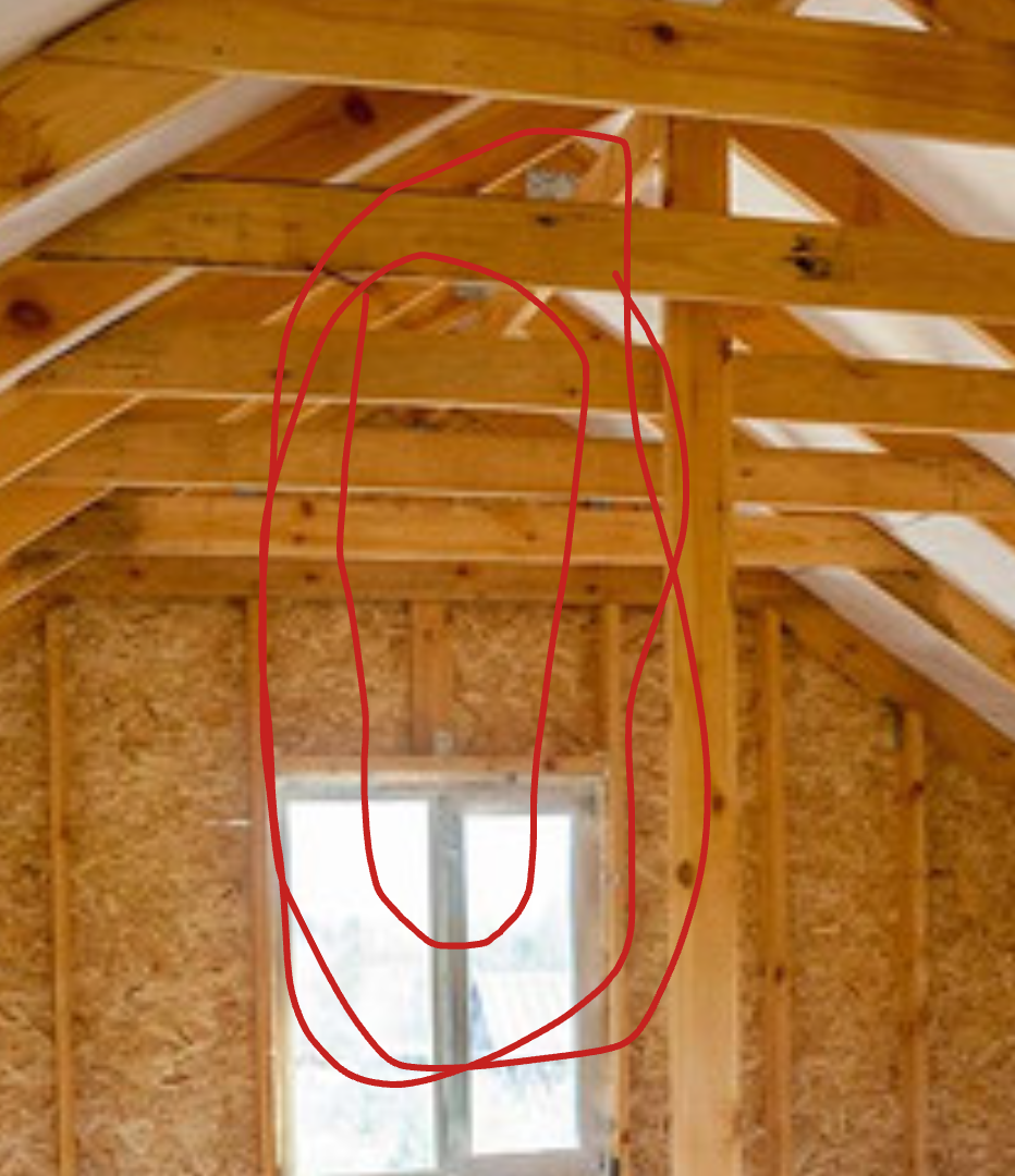 Kuna harjatala peab kandma kogu katuse koormust, siis iga harjatala toepost peab jätkuvalt võtma vastu ülevalt tulevat koormust aga mitte toetuma aknaraami keskohta, nagu siin pildil.