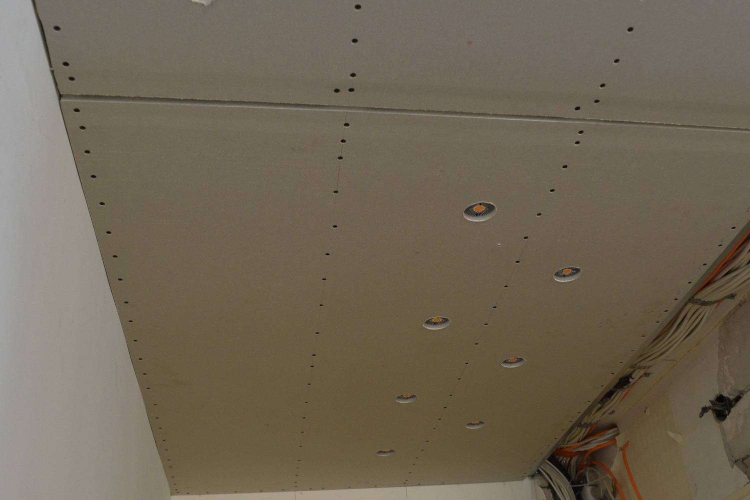 Illustratiivne pilt, millel kipsplaadid malekorras: NB: sellel pildil on töö veel pooleli. Osa kruvisid panemata.