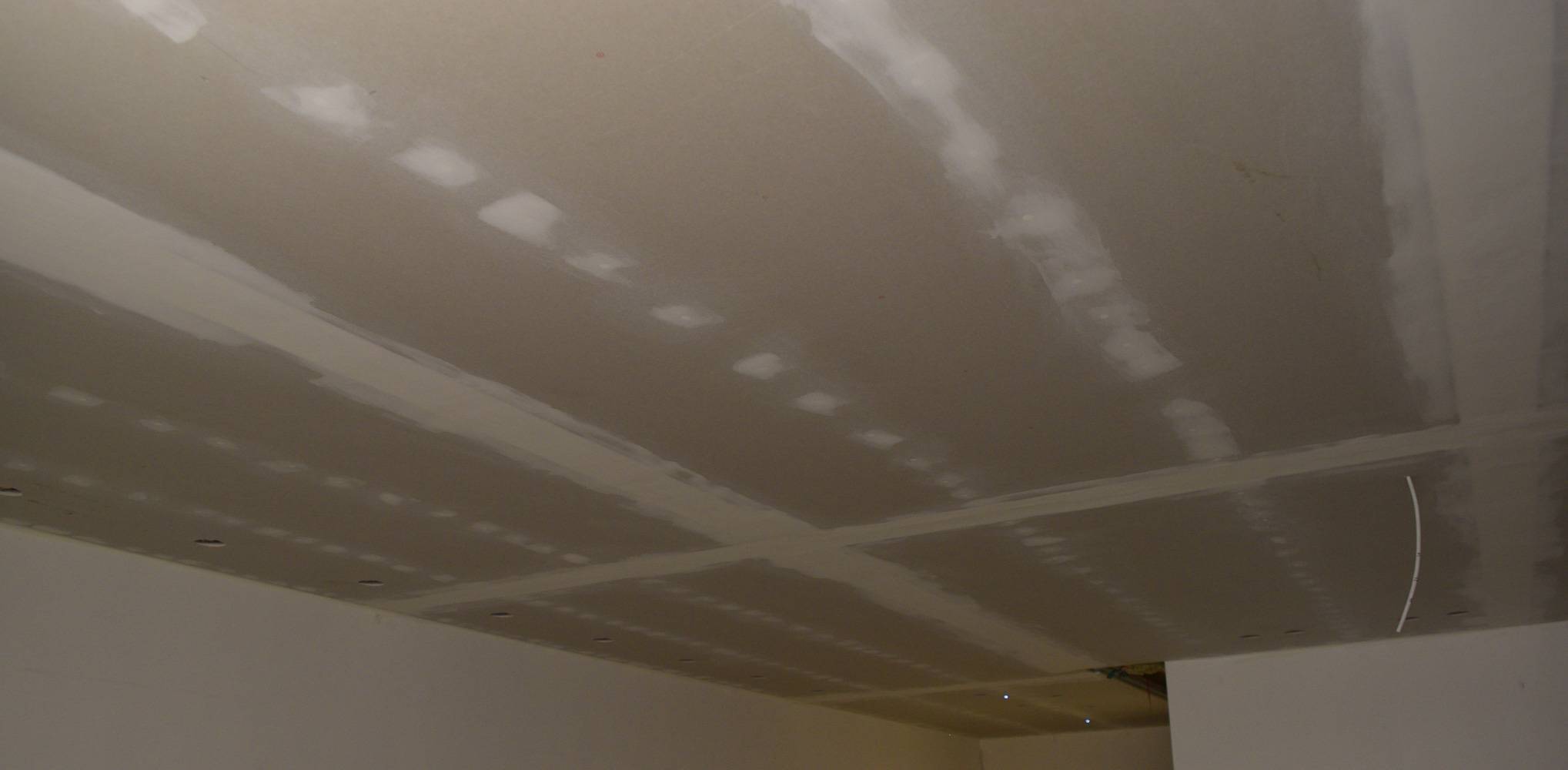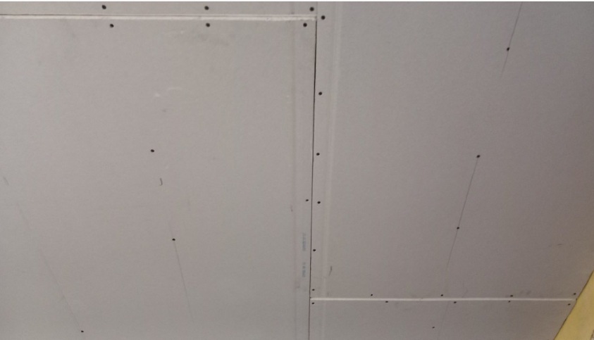 Gyproc 4PRO plaadid, vuukides akrüülhermeetik, tugevdatud klaaskiud võrkteibiga (asetatud vahetult enne peale kantud pahtli (vivacolor LF) peale). Metallkarkass nõuetekohane, ainuke kõrvalekalle on naturaalsest kummist plaadid distantsklambri ja õõnesbetoonpaneeli vahel (akustilisi klambreid polnud saada).