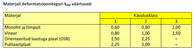 Läbipaine (arvestades roomet) omakaalust on samade puidu parameetrite / koormuste jms puhul kasutusklassis 3 2,5 korda suurem kui kasutusklassis 2 ja 3,3 korda suurem kui kasutusklassis 1