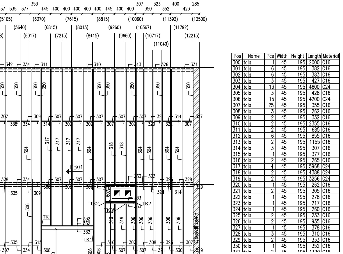 Täpsustuseks osa ühest kunagi tegemisel olnud vahelae konstruktiivsest plaanist: Kandvete seinte vahed tsentrist tsentrisse oli ühel poolel 4,5m ja teisel poolel 4,2m. Klotsid (vekslid) talade otste ja keskosa vahel. Tegemist inseneri joonisega.xxx111 kirjutas: 13 Juun 2024, 08:15Palun täpsusta - mina ei saa aru...Hiljem olen hakanud arvama, et küllap peamiselt pildil näha oleva omaduse tõttu.