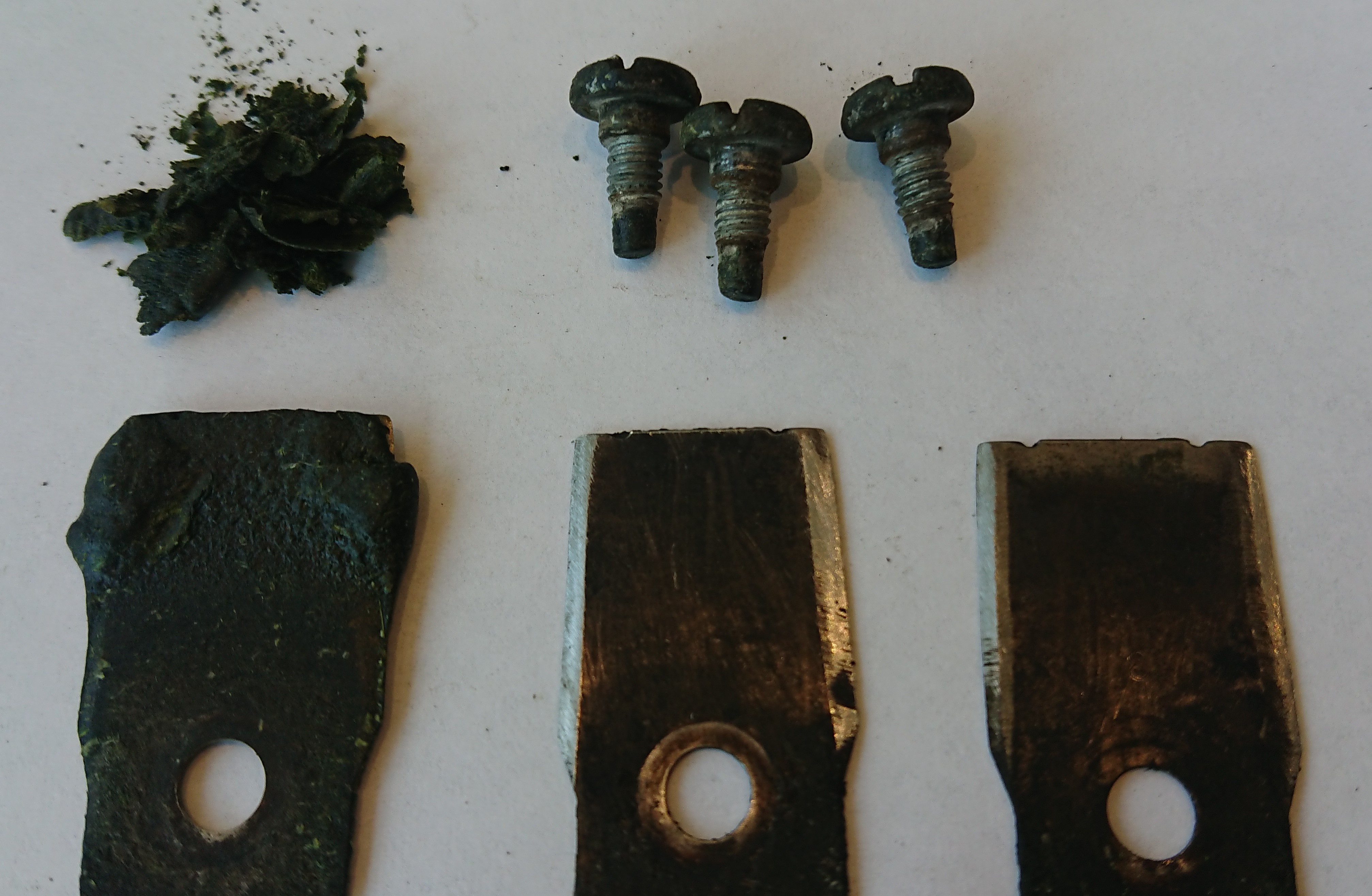 Mis liigub, see kulub. Tänan ja võtan teadmiseks, et kruvid on kulumaterjal. Võibolla need teised terad ja kruvid töötasid halvemates tingimustes, kündsid mutimullahunnikuid vms. Minul läheb hetkel (olude sunnil) 2. hooaeg sama komplektiga.