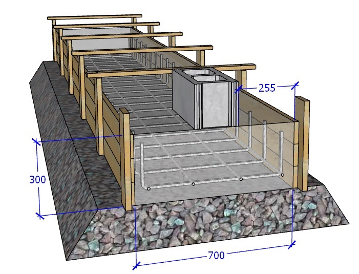 Et, kui vundamendiseinad ja nende all taldmikud on 10+ m pikad ja 0,7m laiad, siis see taldmik töötab hoopis laiupidi, mitte pikkupidi? Ja sealjuures kui selle taldmiku kõrgus on suurem (300mm), kui seina alt välja ulatuv taldmiku osa (255mm)? Ikkagi loete seda ristipidi olevat sarrust töösarruseks?