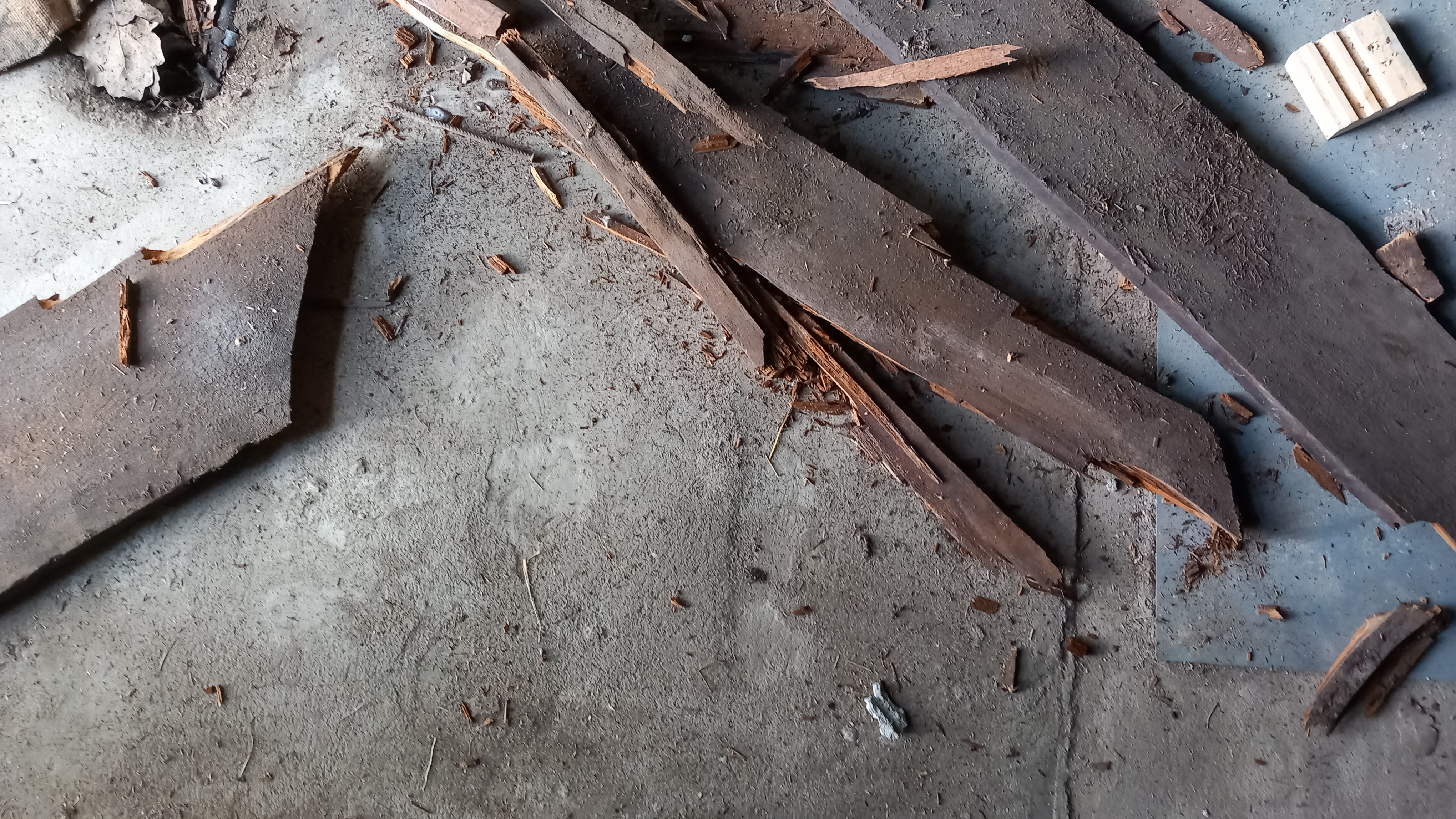 Samas, ega eelminegi lagi mugav ei olnud ka seetõttu, et olemasolev ümarpuidust talade samm on ligi 2 m ja lauad õõtsusid jala all kahtlaselt ning tekitasid kõhedust. Aja jooksul olid mõned lauad looka vajunud. Illustratsiooniks pilt vana lae osade puitlaudade kõverusest. Veel üks pilt minu töö teostamise mugavuse iseloomustamisest: See oli enne tervena 400 mm laiusega laud, mis tundus piisavalt turvaline, aga turvalisus oli näiline. Õnneks mul, vanamehel, veel reaktsioonikiirus hea ja kondid tugevad. Kukkudes läbi lae vigastusi õnneks ei olnud - ainult väikesed marrastused ja kerged sinikad.