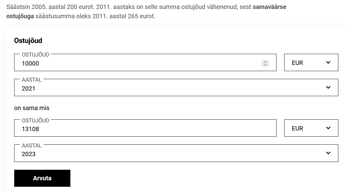 Eurod küll suurenevad , aga ostujõud (inflatsioon) . https://www.stat.ee/et/avasta-statistik ... innaindeks