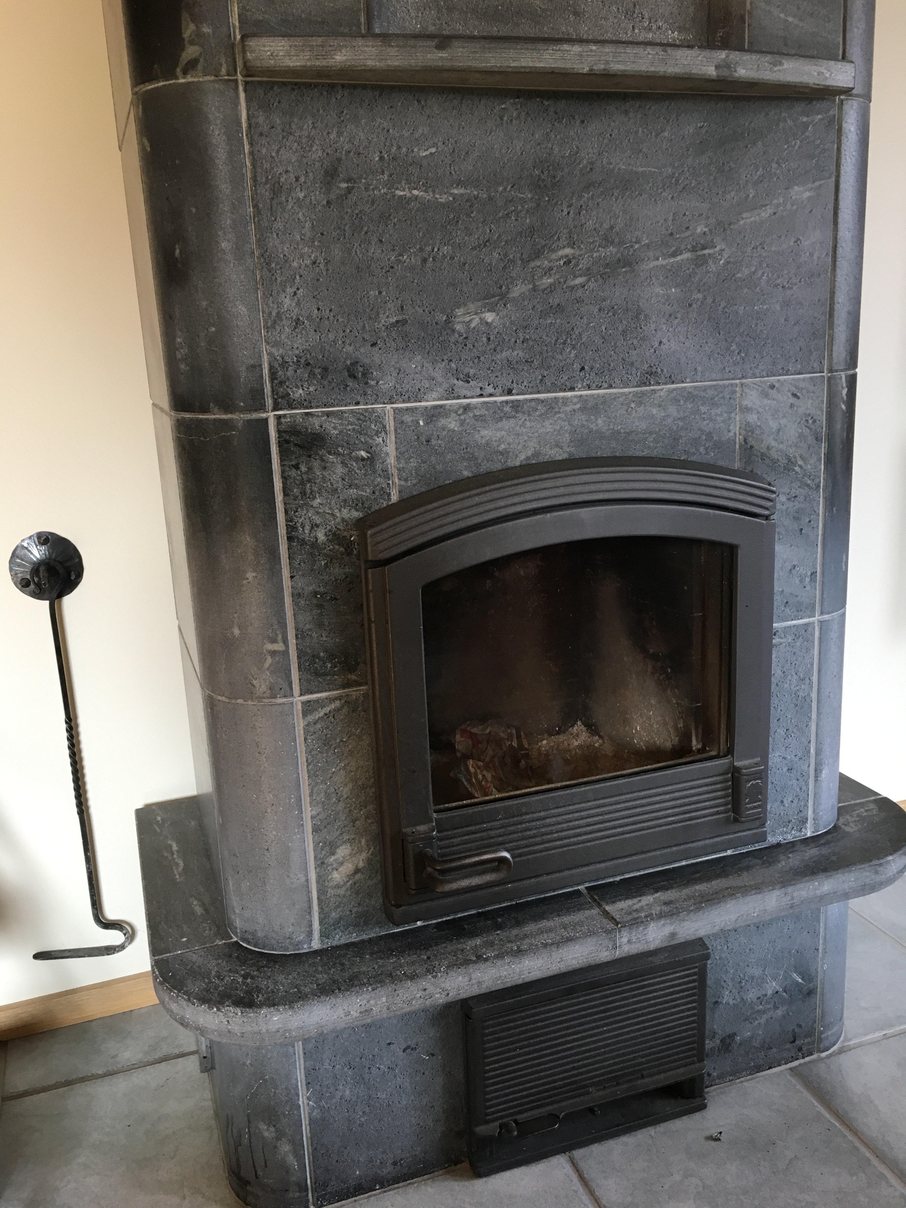 Kälimehel oli ahju ees mingi Lätis toodetud uks. Mõlema ukse klaasid olid katki.