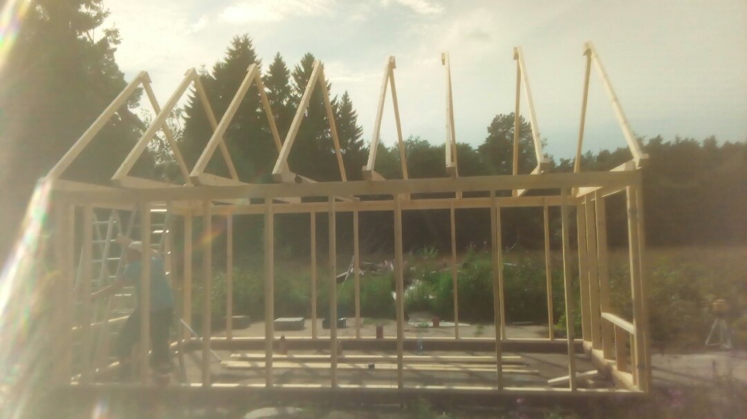 Katuse aluskate on plaanis panna nii, et ulatub üle sarikate otste ja siis sealt ühendan horisontaalse tala kaudu seinaga.