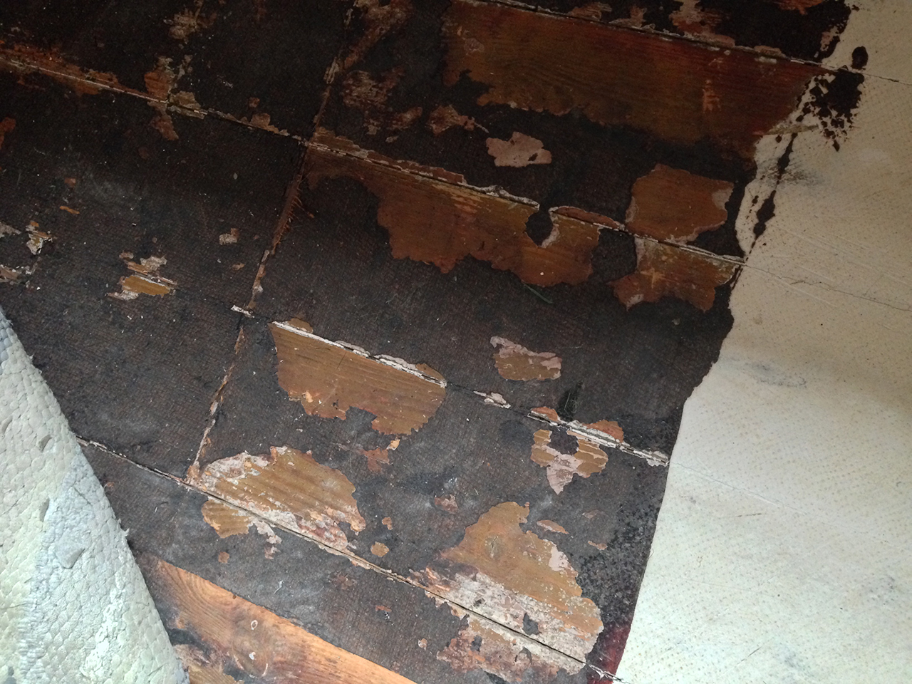 Suurem osa möödus probleemideta, kuid ühes kohas on linoleum või reliin (ei tea täpselt, mis materjaliga tegu) tõenäolselt kuuma saanud, ajapikku veidi sulanud ja põranda külge hirmtugevasti kinni jäänud. Paistab, et selle koha pealt läheb allkorrusel mingi soojatoru, kuna probleeme koht on üsna konkreetne sirge joon risti üle põranda.