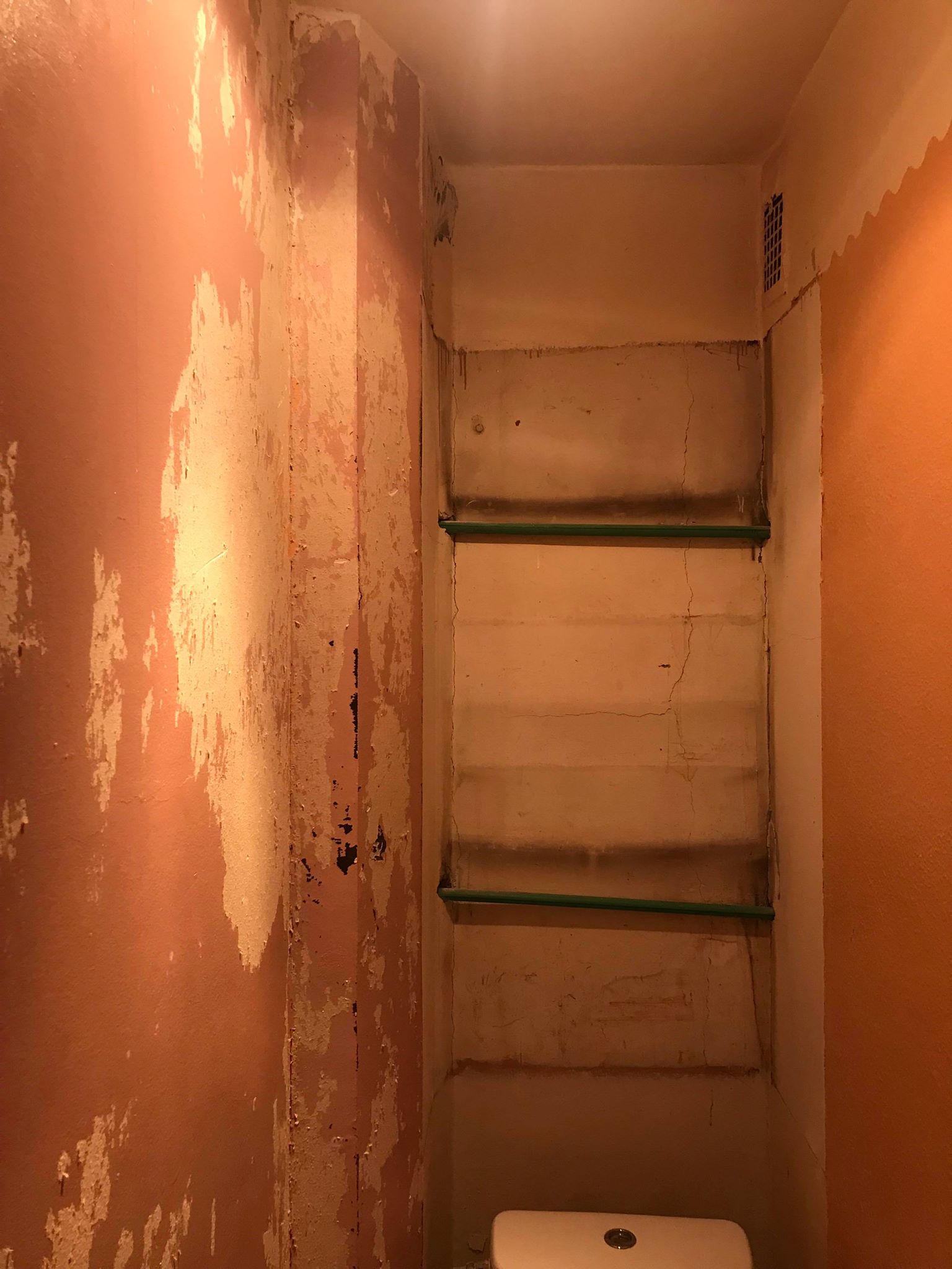 Tõesti - lihtsaim on pind pahteldada ja üle värvida või muu viimistlusega lahendada. Pole mõtet kitsas peldikus täisnurka taga ajada.