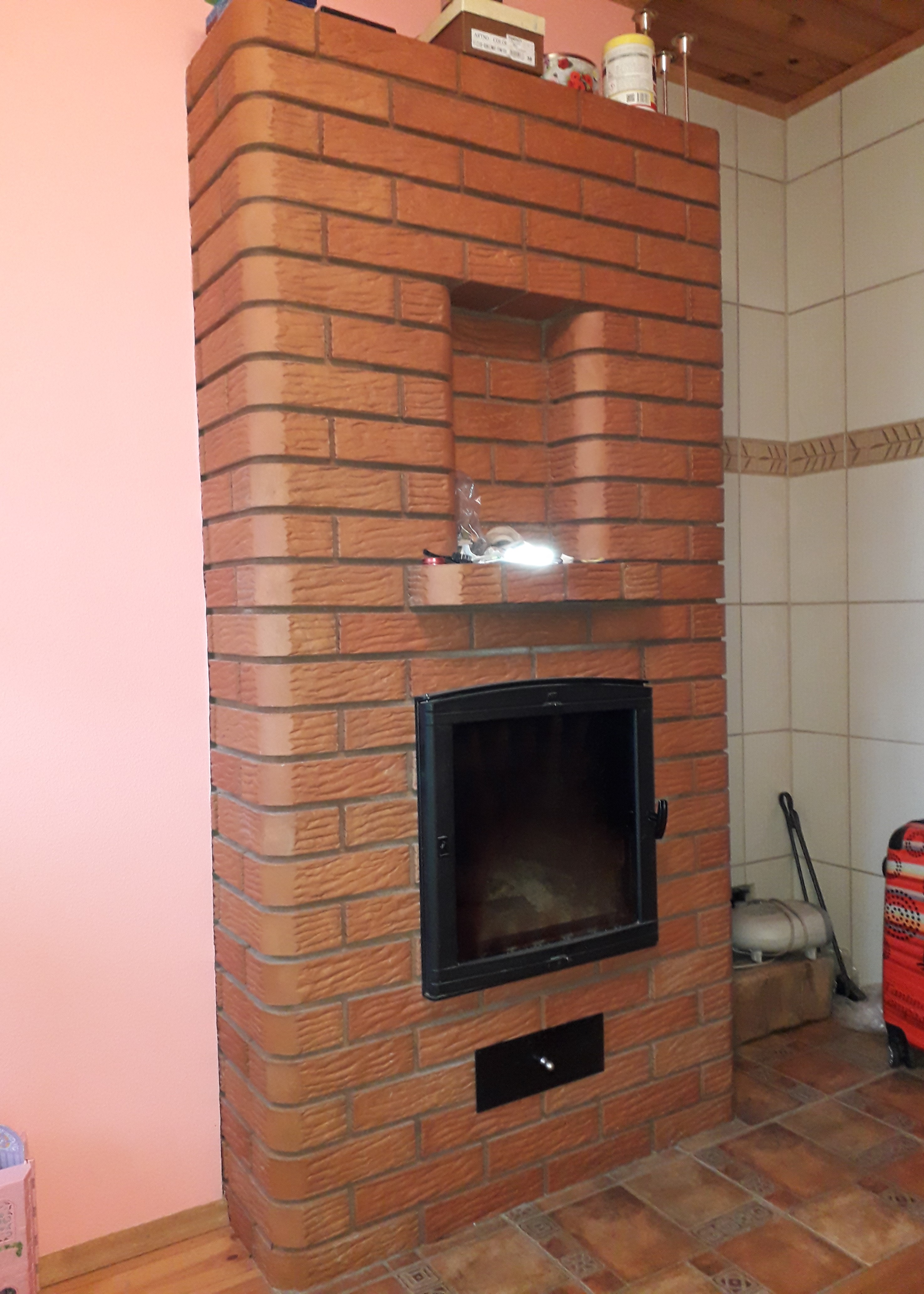 ...küttes võib algusjärgus ust avades suitsu sisse tulla (õhurõhk, tuule suund, kütan harva) aga üldiselt on tõmme hea ja kuumust jagub. 30 min pärast kiirgab kolle nii, et 2m raadiuses pikemalt olla ei taha. Üldiselt polegi vaja ust näppida sest kolde kuju suunab halud restile.
