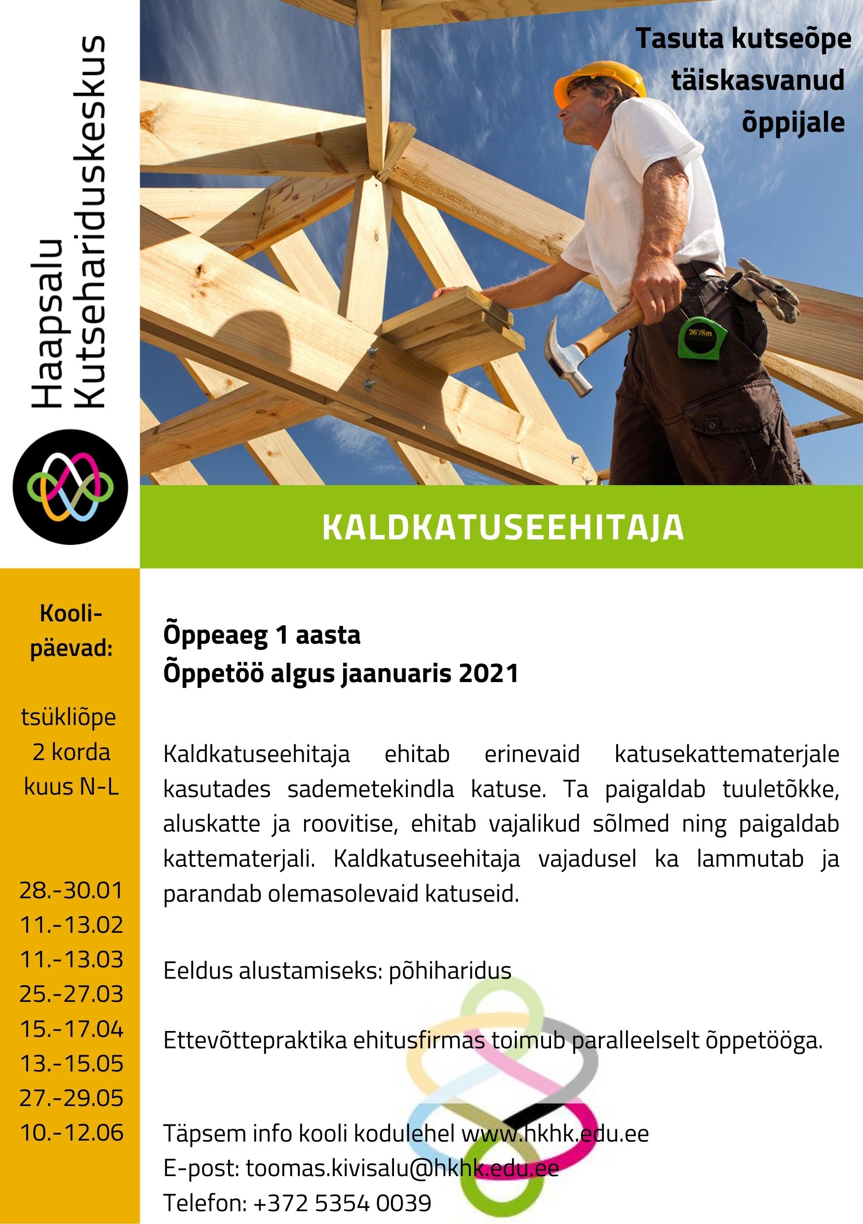Tasuta aastane õpe - kaldkatuseehitaja
