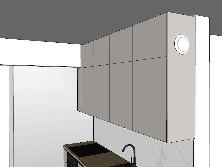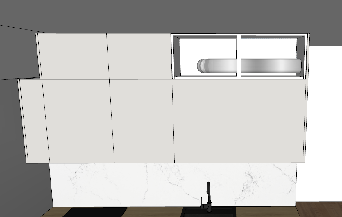 Ventilatsioonitoru pikendamine põlvega (köögimööbli sees)