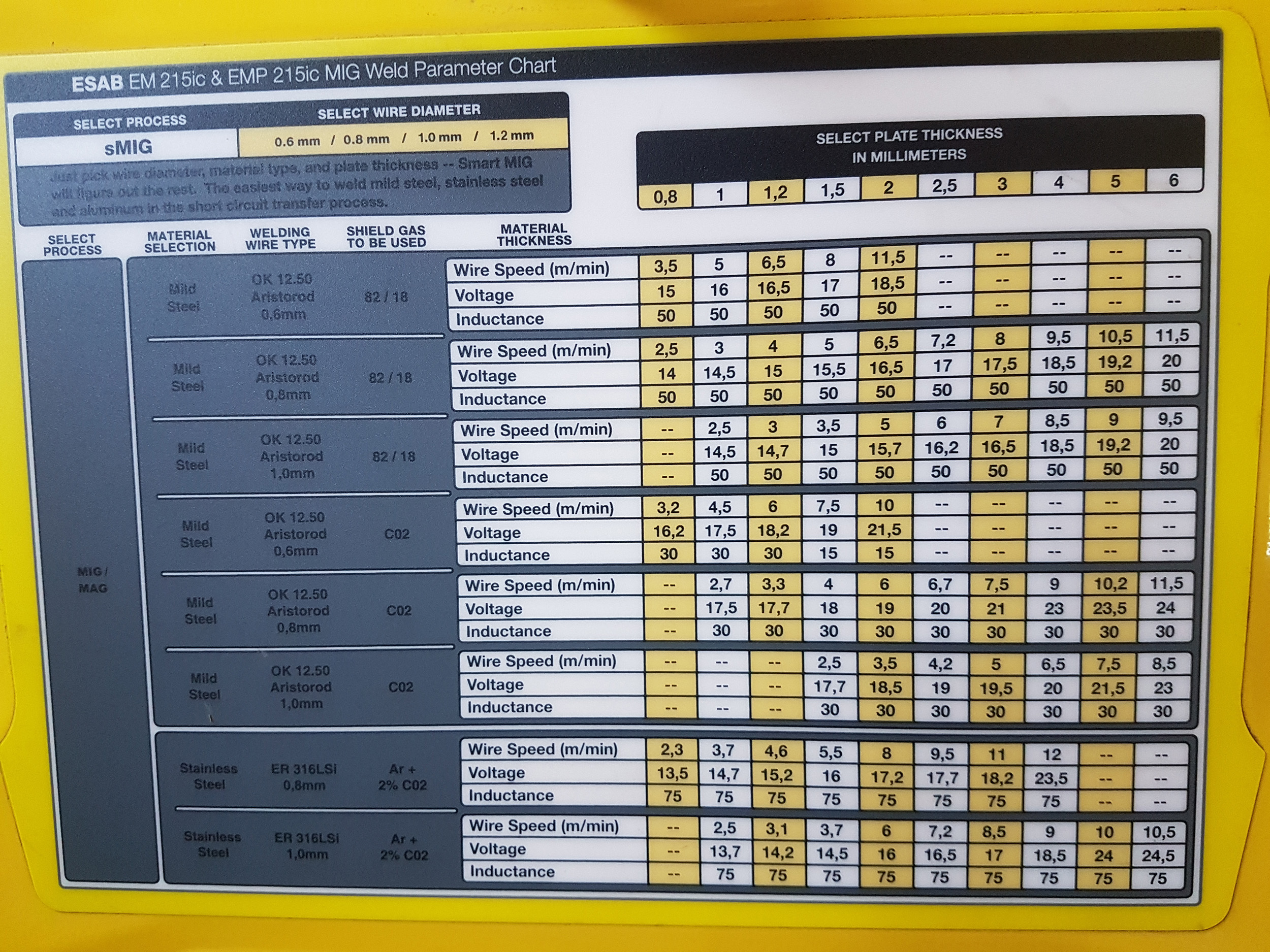 Õnneks teeb sinu elu lihtsaks ,et antud isendil on digitaalne ekraan ja kõik seaded saad omale ülesse märkida tuleviku tarbeks. Minu eelmisel Esabil mingeid numbreid ei olnudki ja igakord kui midagi keevitada oli vaja siis tuli hakata masinat seadistama vastavalt keevitatavale materjalile. Präegusel masinal on Smart Mig ja seal paned lihtsalt materjali paksuse ja asi ants, teeb ikka elu kordades lihtsamaks.