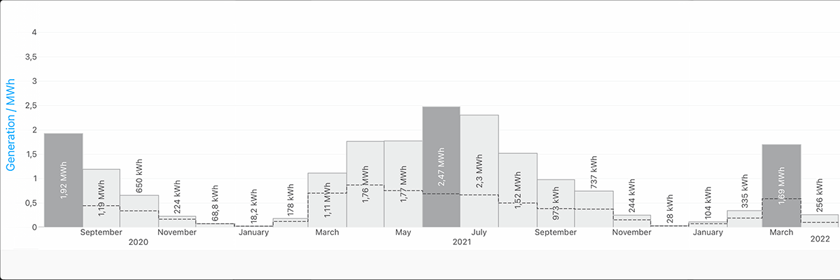 Elektritootmise kohta võin tuua oma tootmisstatistika (14kW paneele, ca 80m2)