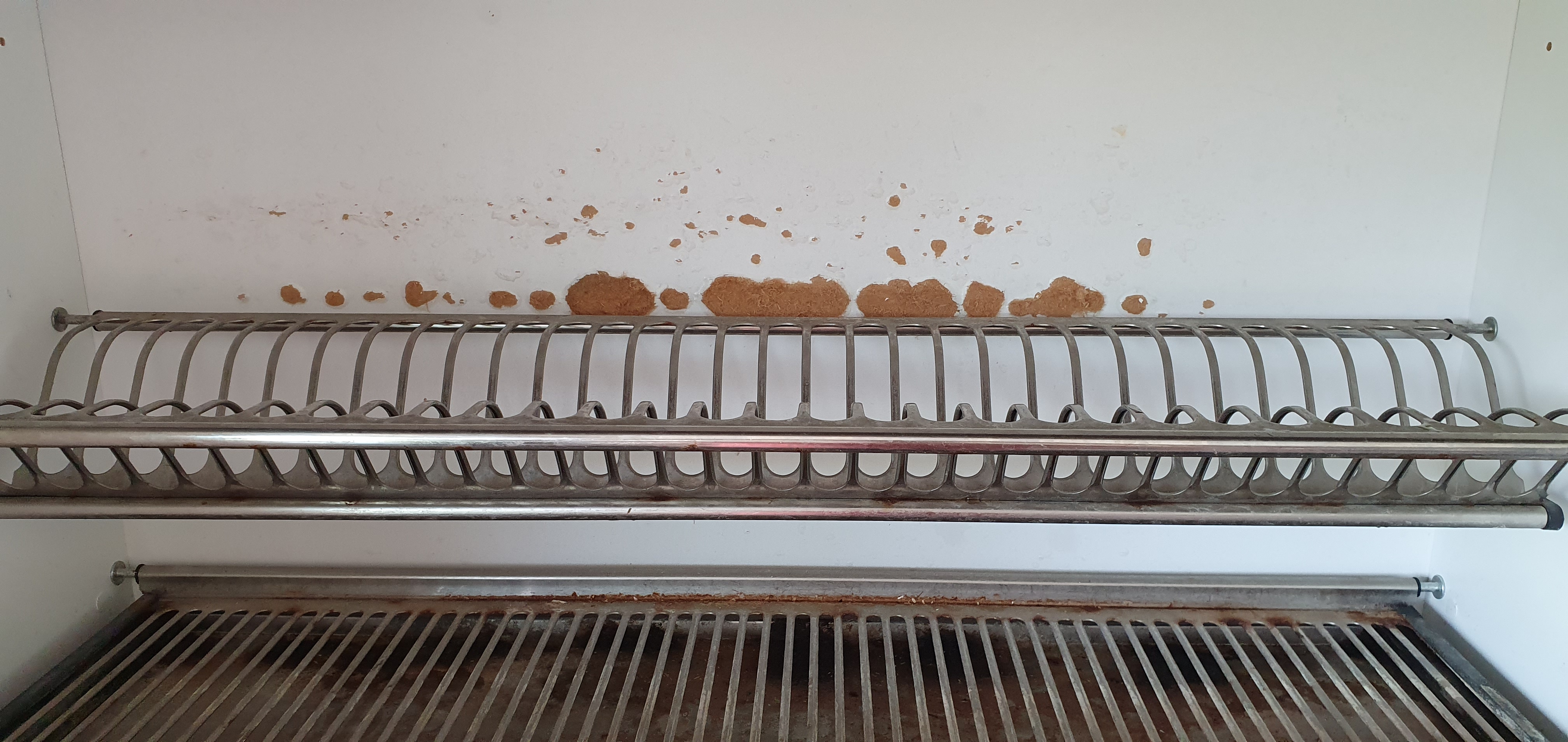 Selliseks muutub soome papp köögikapi tagaseinas 7-8 aastaga kui suuremad nõud servaga vastu pappi panna. Papi vahetamiseks peaks kapi maha võtma. Sellest lihtsam tundub otsida riba sitkemat plasti ja kleepida õigele kõrgusele. Paadilakiga üle võõbata käis ka peast läbi aga selleks vaja vist kohevaks pundunud aluspind esmalt tugevaks saada. Auto/epopahtel? No aga siis juba tõmmatagi laiem riba pahtlit ja pole lakki vajagi? Keegi analoogse asjaga kokku puutunud äkki?