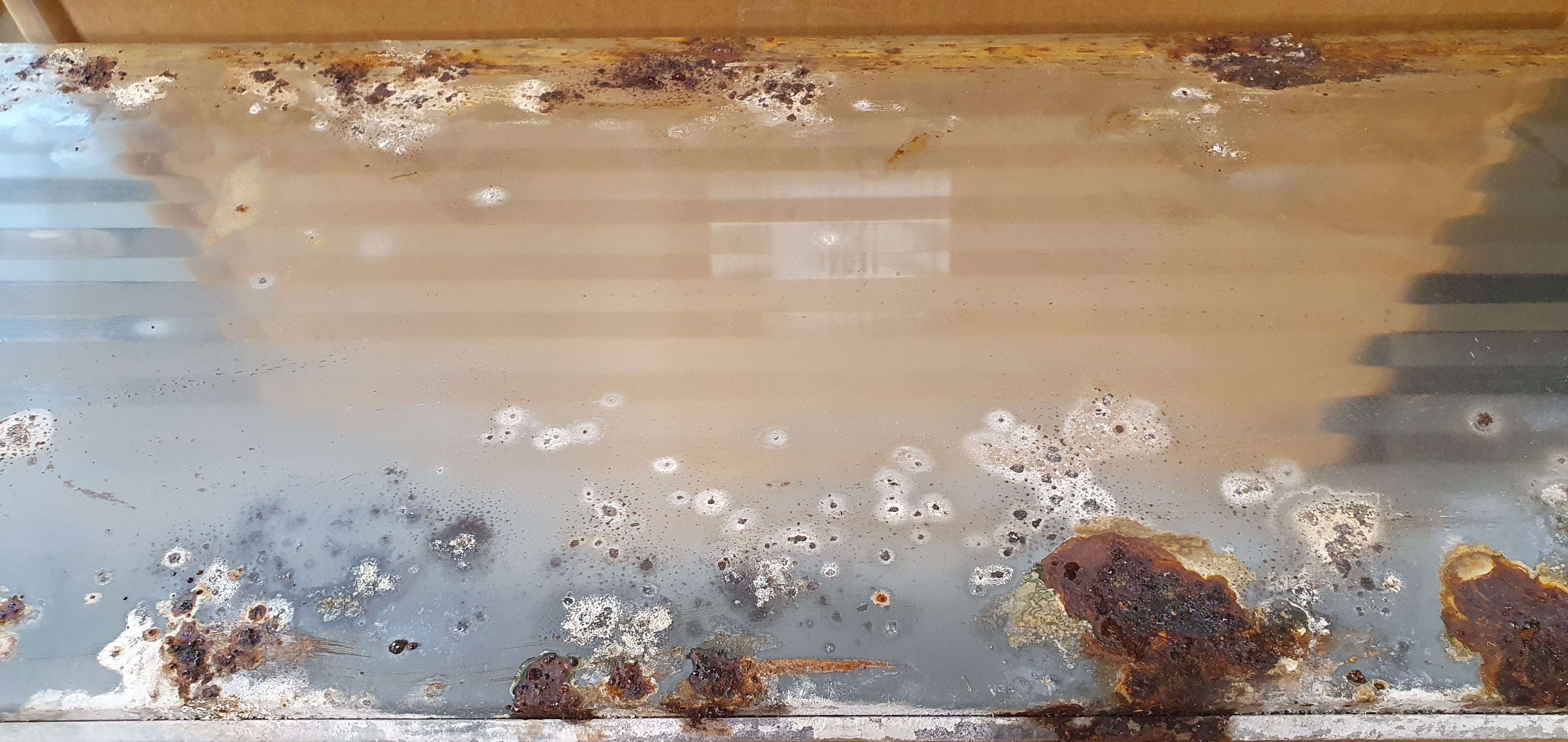 Üldharival otstarbel foto vanni põhjast, altpoolt küljest. Ülemist poolt pole mõtet näidata. See on katlakivist matt, probleemid ei paista nii selgelt välja.