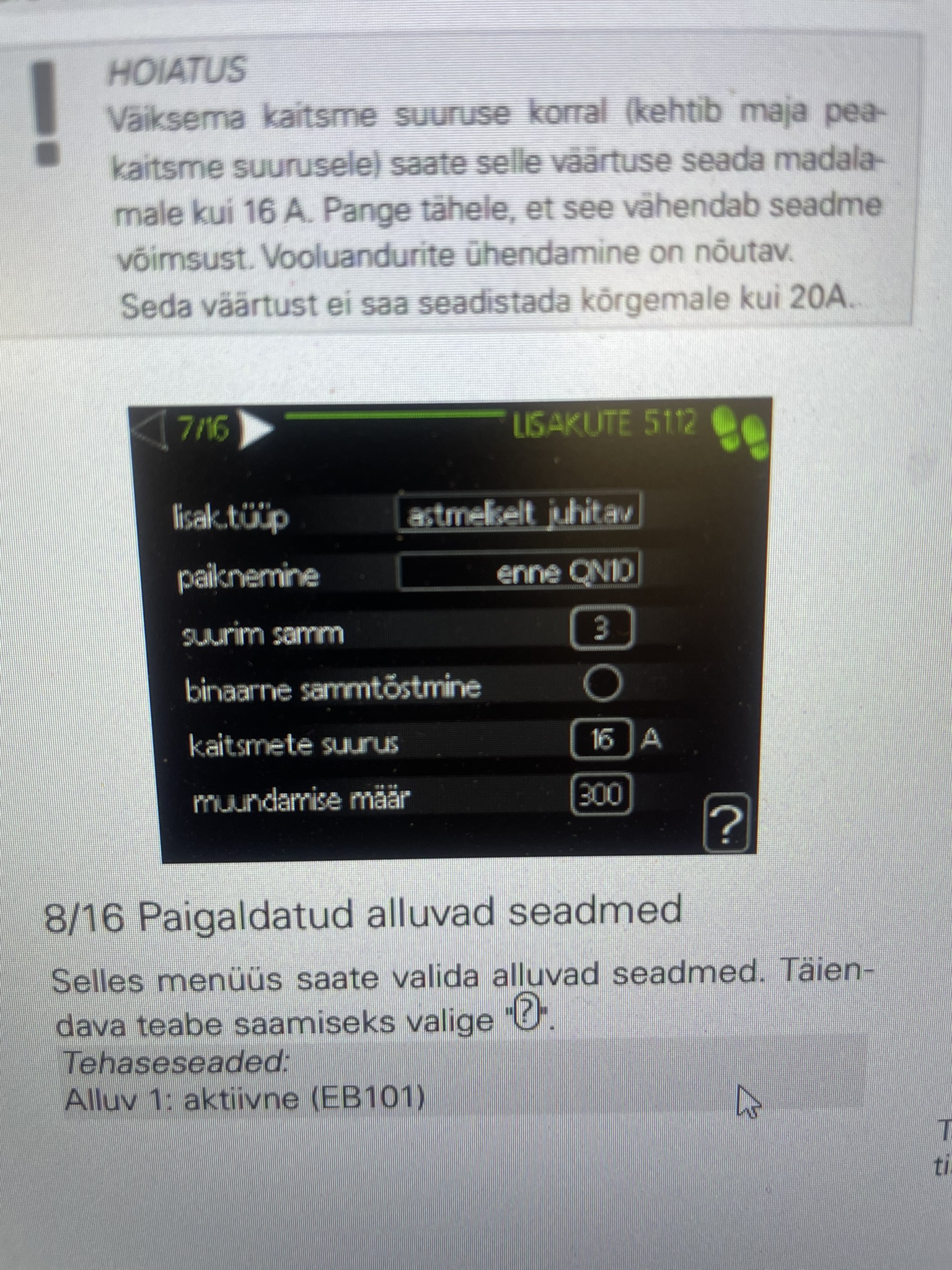 Muutus peale taastamist kaitsme suurus 16A asemel 20A. Ja oligi korras. Kui lisakütte käima ajasin lülitas suht kohe teise astme(6kw)sisse. Samas pumbale on paigaldatud C16A kaitse ja kui ma õigesti arvutasin siis 6kw peaks tarbima umbes 15A. Siit ka viimane küsimus, et kui tekib vajadus kasutada lisakütet 6kw astmes siis kas ma peaksin pumbal 16A kaitsme vahetama võimsama 20A vastu? Maja peakaitse on 3x25A.