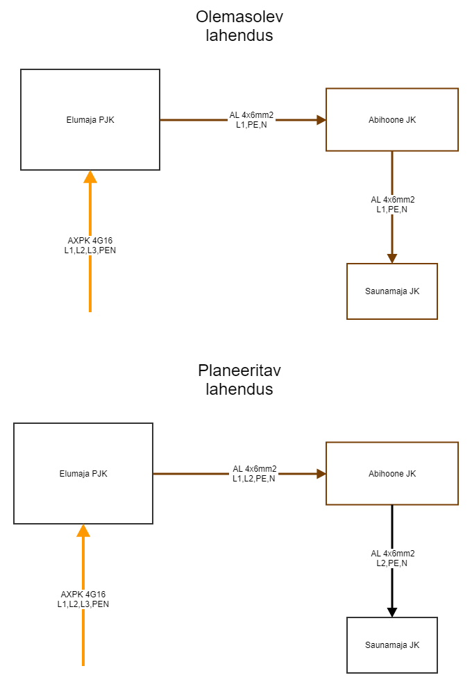 Algne küsimus oli ikkagi see, et kas tehniliselt on võimalik antud kaablil võtta vaba soon kasutusele nii, et abihoone ja saunamaja saaks eraldi faaside peale?