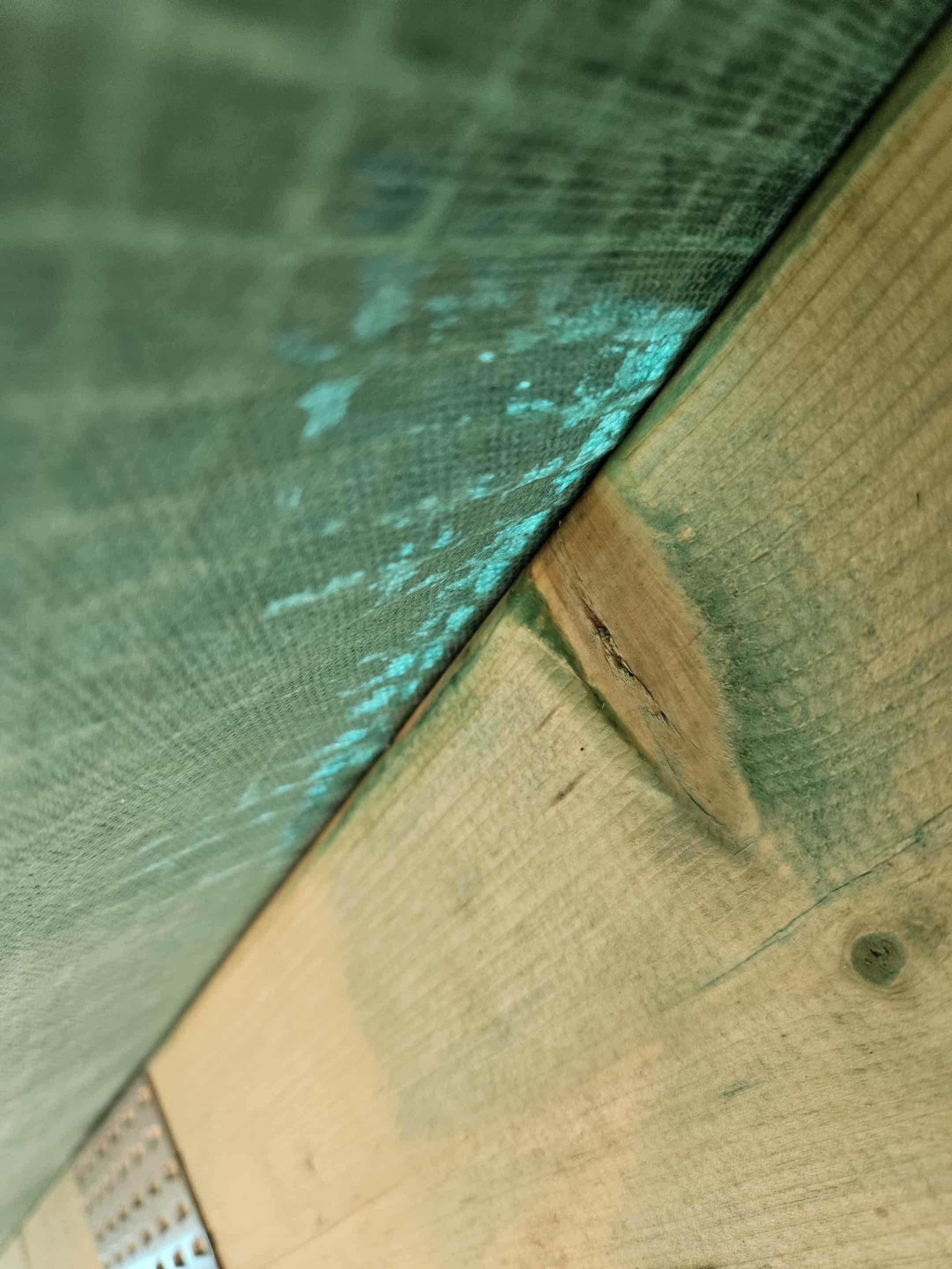 Fermidel oli ogaplaatide ümbruses puidusine ja sai need üle võõbatud RP Wood puidu antiseptikuga. Enamikud kohad olid võõbatud mitu päeva enne aluskatte paigaldust ja juba ka kuivad. Küll aga sai osaliselt veel tupsutatud altpoolt fermidel kohti ka siis kui juba aluskate oli peal ja iga väiksemgi immutusvahendi kokkupuude aluskattega on nüüd rikutud, vihma tilgub läbi ja need kohad on "Läbipaistvamad"