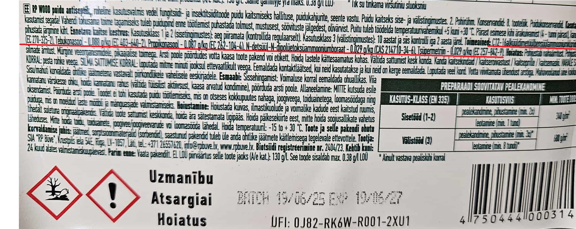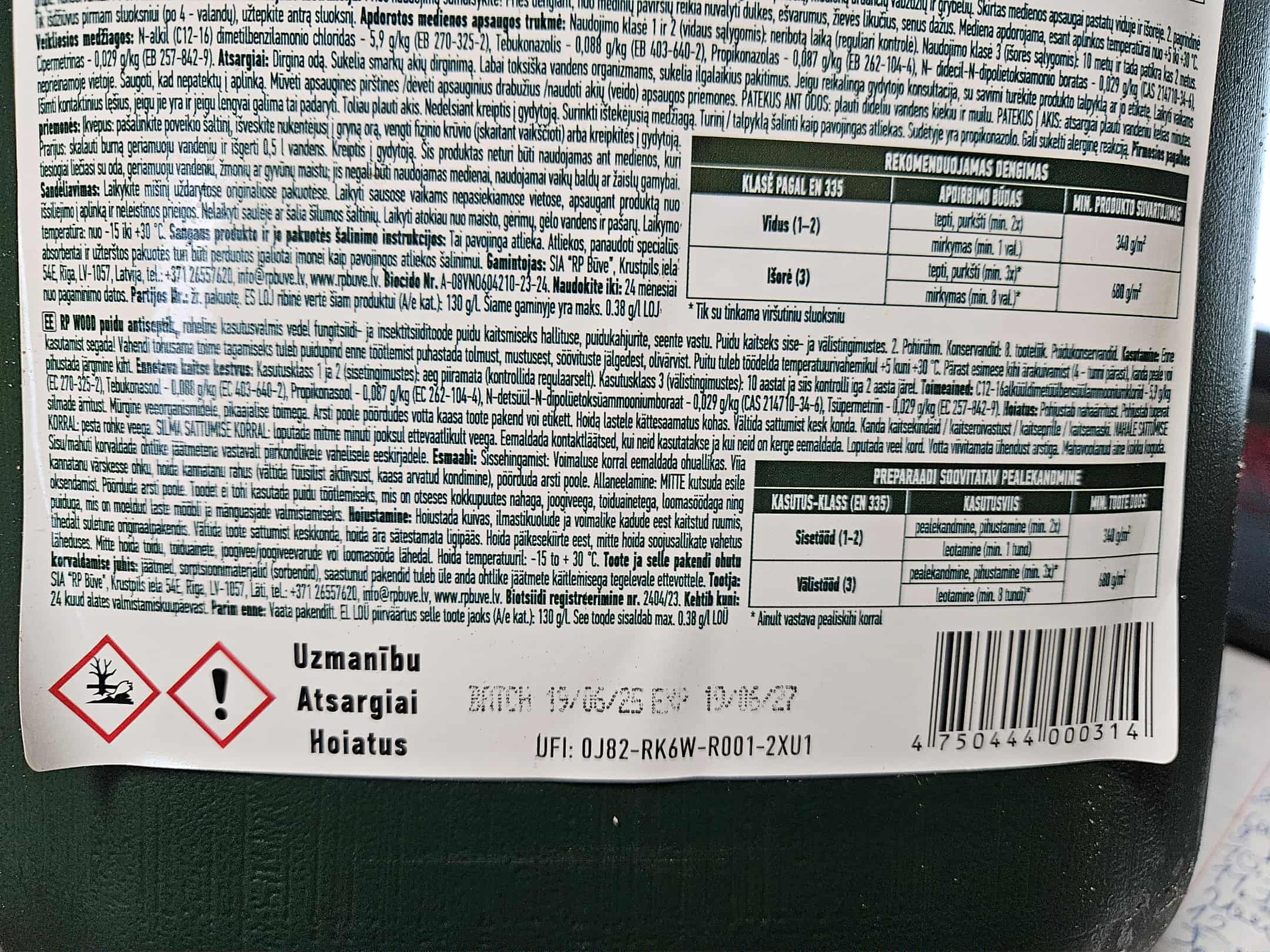 11,25 g/kg alküülbensüüldimetüülammooniumkloriidi, 11,25 g/kg boorhapet. ( https://www.rpbuve.lv/rp-wood/rp-wood-k ... iseptikis/ ) Pakendil aga koostisosade nimekiri palju pikem. Otseselt et söövitav - ei loe kuskilt välja.