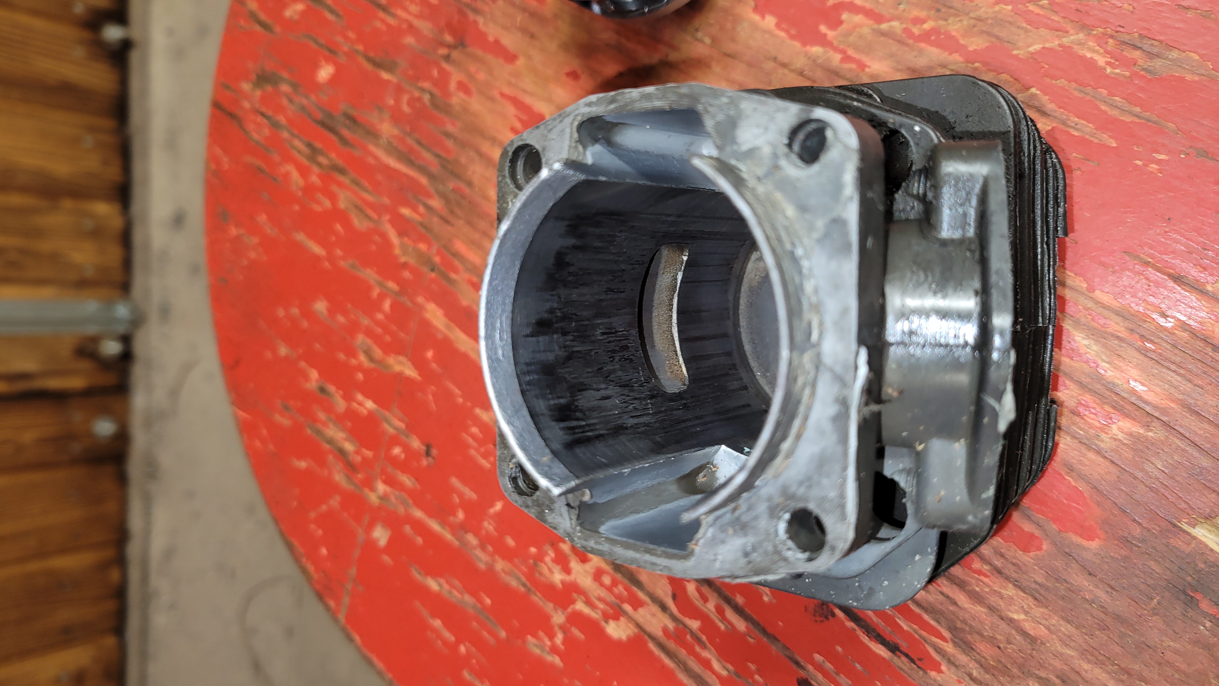 väljalaske poole peal sügavad sooned. Viisin ta siis koju garaaži. Aliexpressist avastasin, et sealt saab tellida remondikomplekti saele (kolb, silinder, rõngad, sõrm, stopperid, nõellaager). Komplekti hind oli alla 20 euro. Tellisin ära, panin kokku ja hakkas tööle. Mind aga huvitab et mis võis põhjustada vana mootori kokkujooksmise?