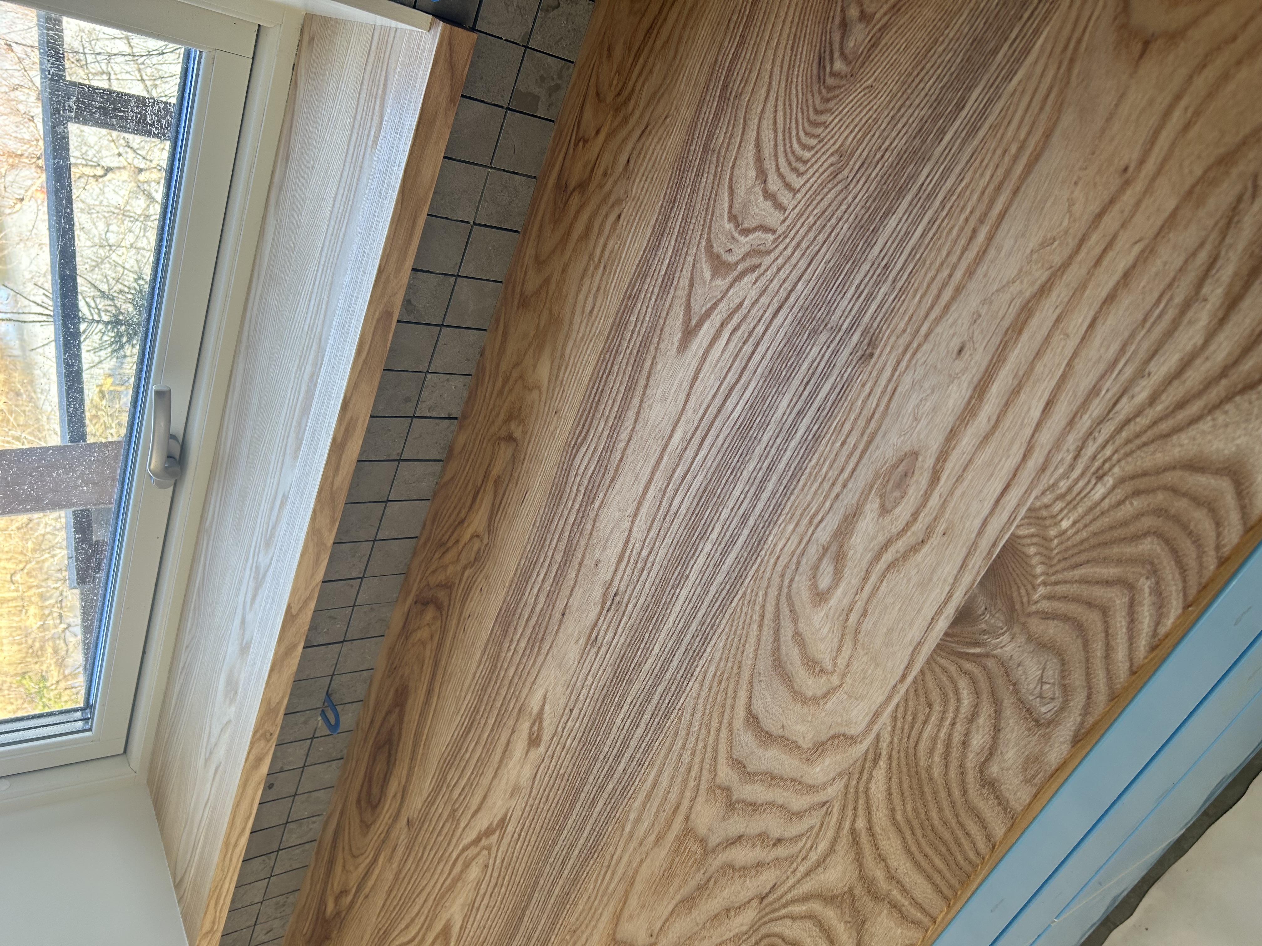 Enne paigaldust otsustas klient teha õlitamise ise. Kasutati sama õli (Herdins Köksbänkolja PLUS), kanti peale kaks kihti ja kaeti korrektselt kõik pinnad, sealhulgas alumised küljed.